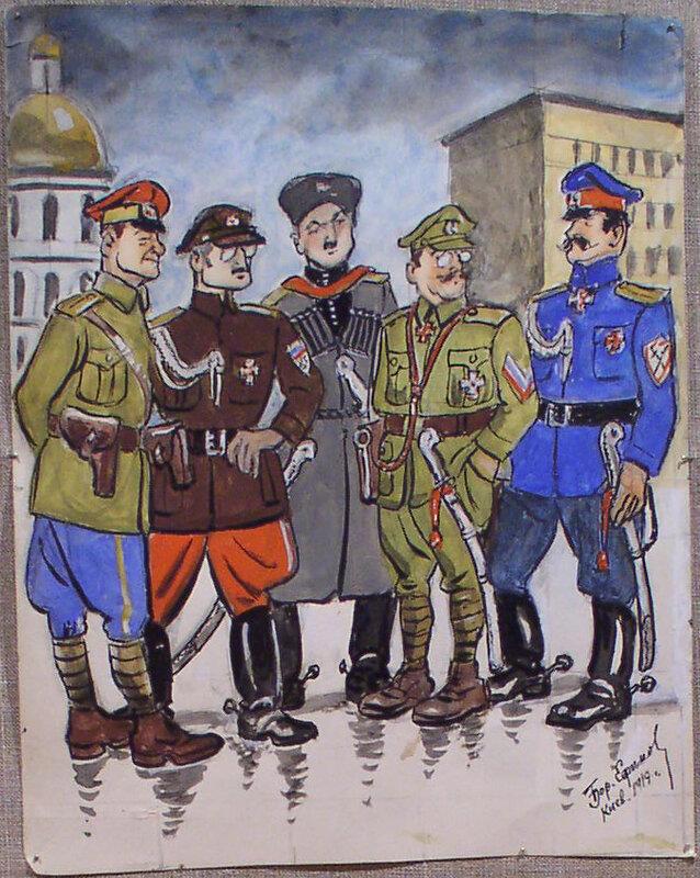 Автор: Николай БергКарикатурист Борис Ефимов жил в Киеве в то время, когда власть там менялась быстро и кардинально. Как положено хорошему художнику-графику глаз у него был острый. Вот он и отобразил тех, кто хоть и не надолго, но командовал там парадом.
