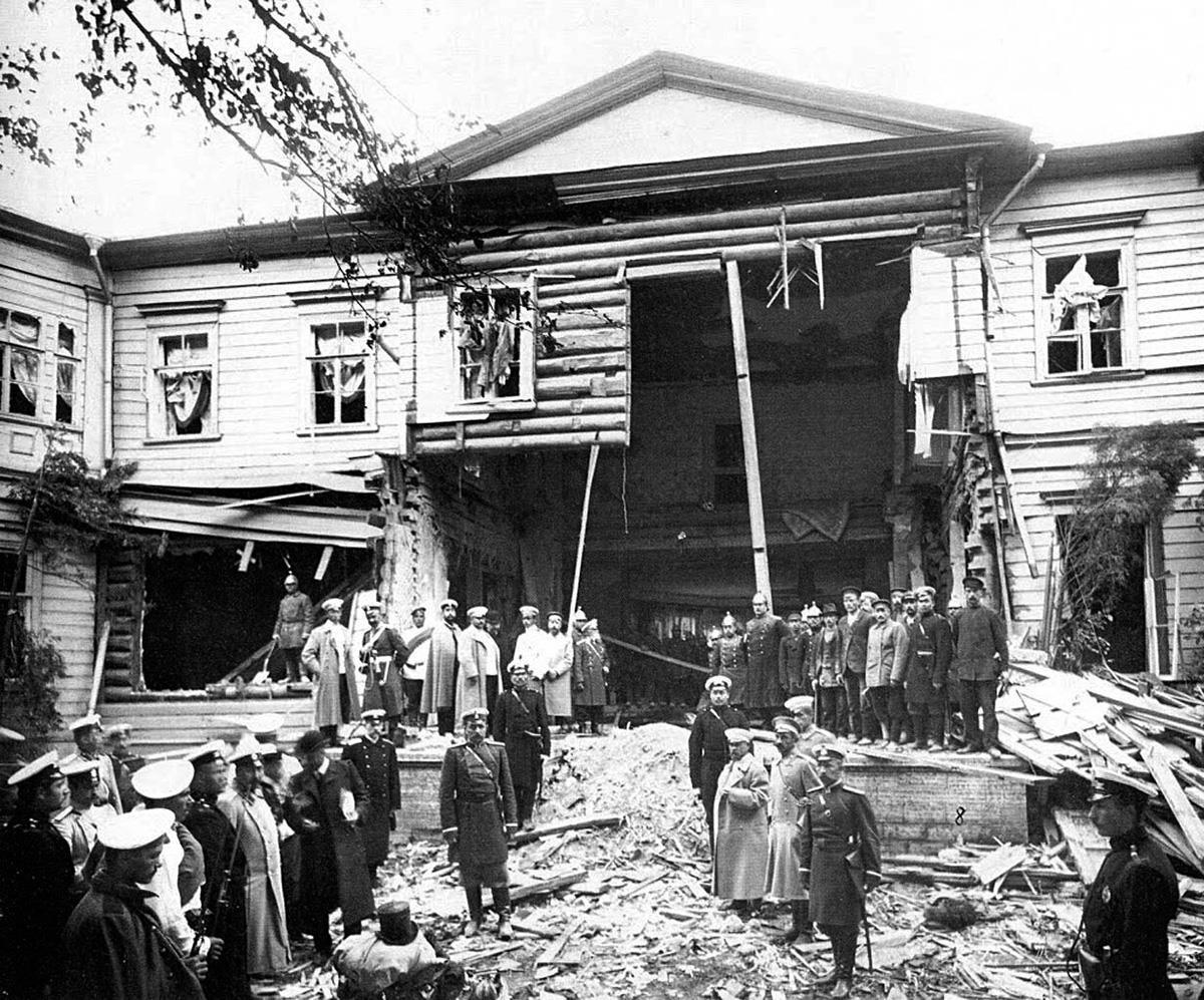 Погибло двадцать семь человек, семьдесят было ранено, шесть из них умерло на другой день. Террористы, генерал Замятнин и швейцар были разорваны на куски, но премьер-министр не только остался жив, но и не получил травм. Единственное – взрыв, сотрясший комнаты, подбросил в воздух чернильницу, которая перелетев через голову Столыпина, облила его чернилами.