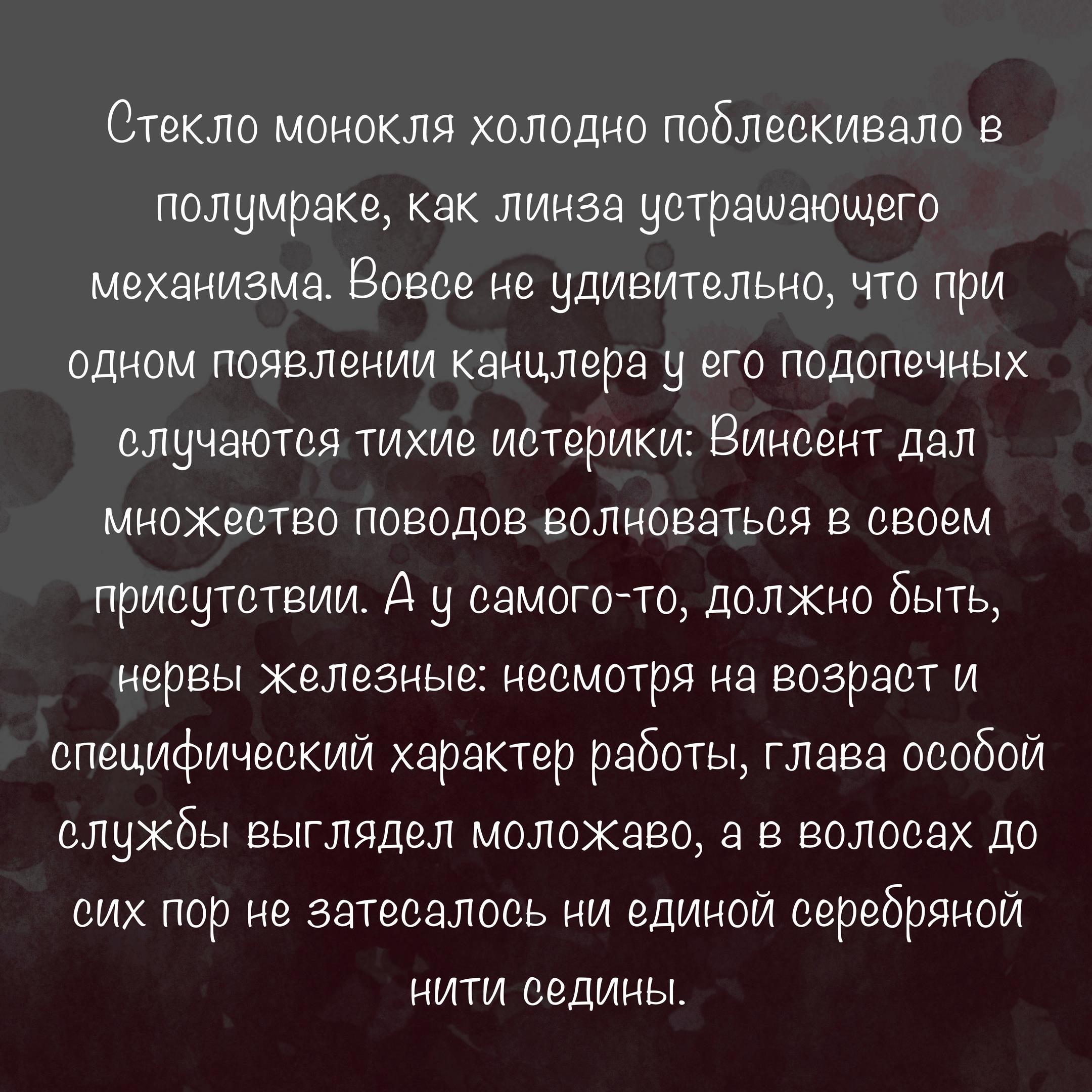 Еще у него имеются навыки стрельбы и неплохо поставлен удар)) но главным оружием канцлера, несомненно, является мысль — цепкая, натренированная и безжалостная.