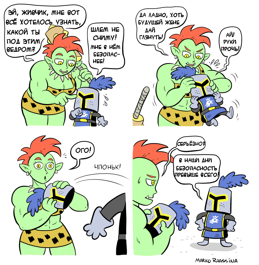 Автор: Евтушенко СергейЗря она не сняла второй шлем. Посмотрела бы на третий. Оригинал тут.