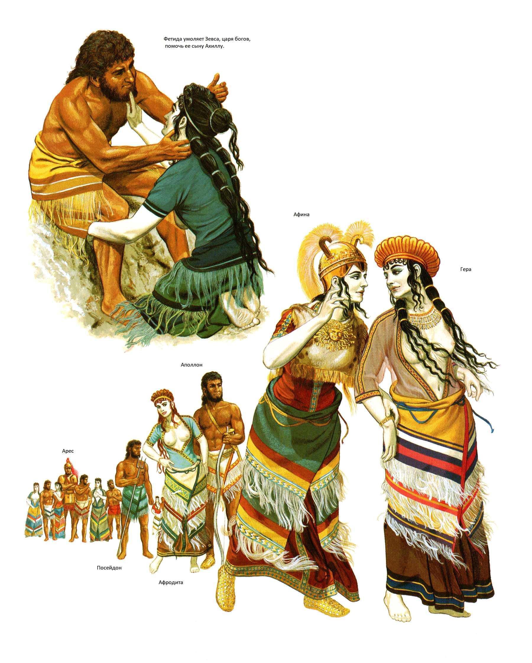 Все они поголовно одеты в критские, минойские костюмы. Однако как минимум Аполлон и Афродита - боги не критские.