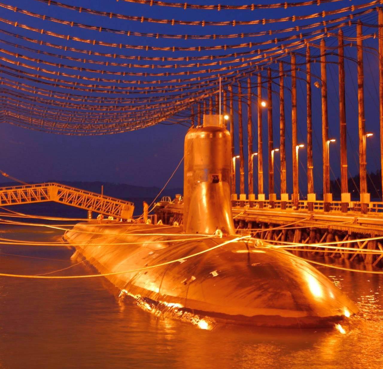 Причём третья лодка в серии уже настолько другая, что её и к серии-то отнести можно с натяжкой. Дело в том, что её решили приспособить для решения «специальных задач». Именно под них лодку удлинили где-то на 25 метров, в которые разместили специальный отсек для несения подводных аппаратов и ещё чего-то там. А чтобы она не потеряла манёвренности, в носу установили дополнительное подруливающее устройство. Ну и ещё, по мелочи. То есть среди трёх «золотых субмарин» третья получилась самой золотой. Вот такой примерно… впрочем, почему «примерно»? Это она и есть: