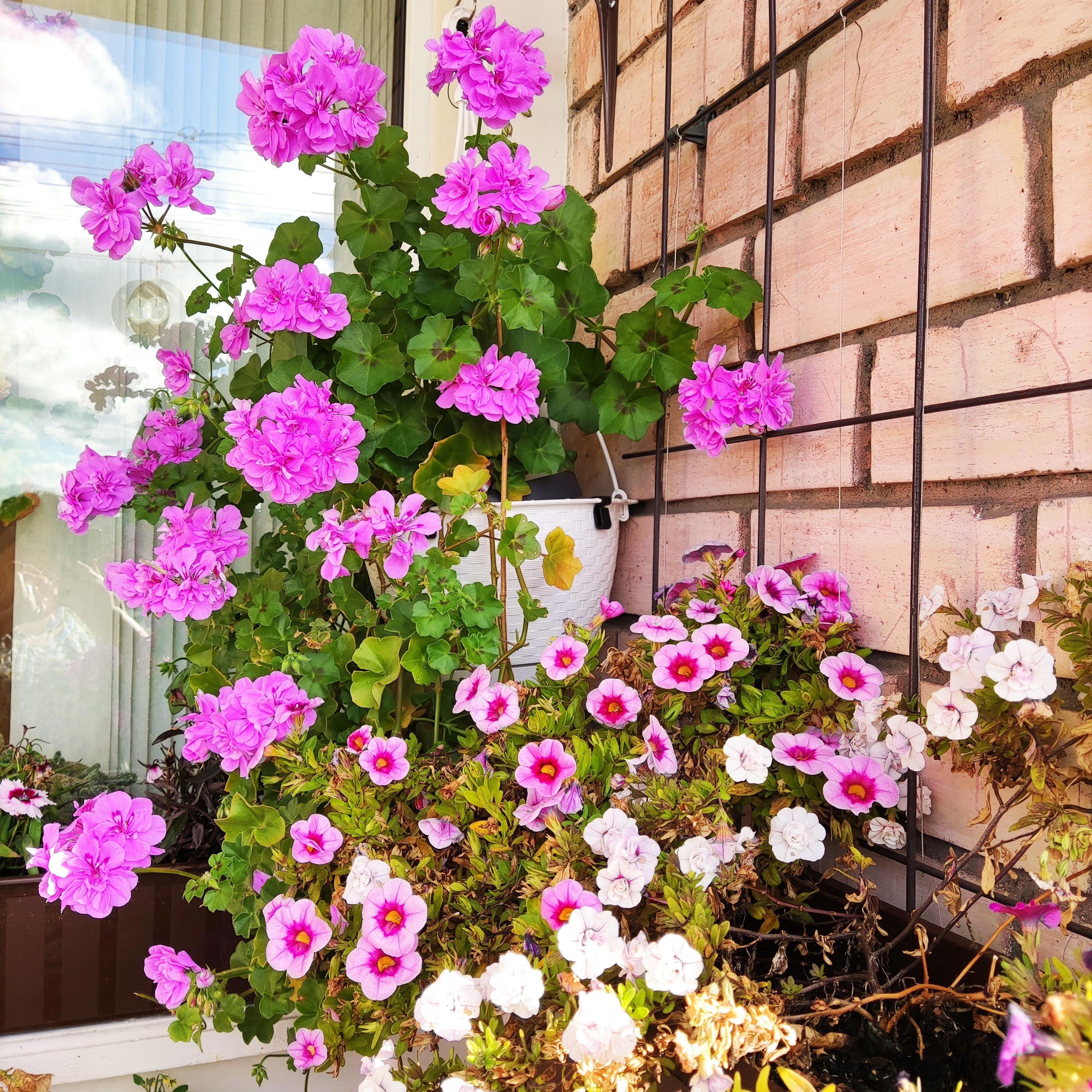 Герань тоже выселяется на простор, благо муж соорудил для нее специальную подвеску. Он у меня философ: если жене для счастья нужна герань, он спорить точно не будет, приколотит что надо куда надо и с чувством выполненного долга отойдет в сторонку. Единственное, что заставляет его намекнуть, что, возможно, я перестаралась с горшками, это - момент, когда за цветами становится не видно окна. Туту уж я покорно соглашаюсь и как-нибудь раздвигаю эти зеленые тучи руками.