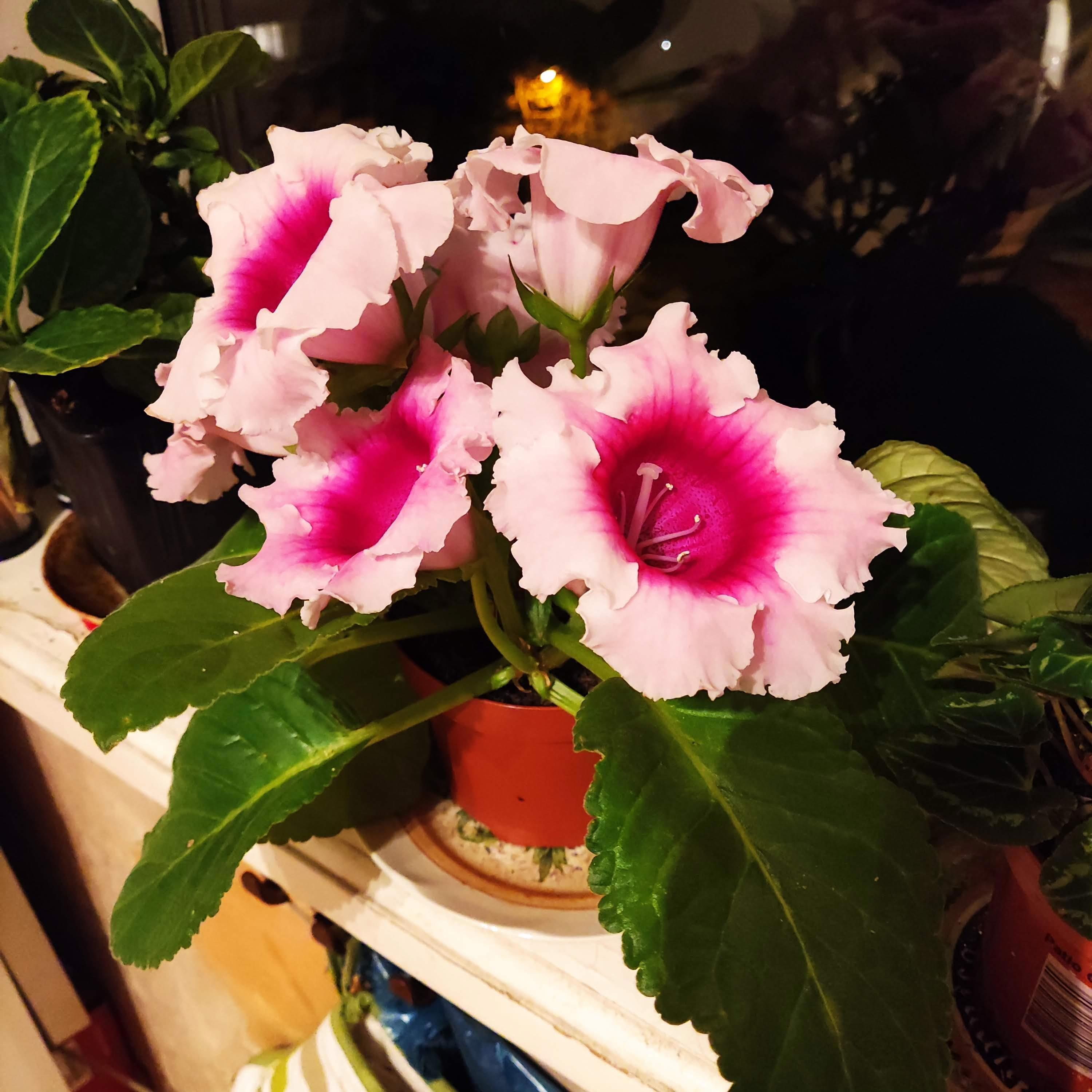 А на северной... О, на северной своя жизнь. То, что там растет лук и базилик на салаты, это не считается. Цветочки, вот кто рулит. Гортензия (см. розовая наверху) отцвела, идет на зимовку. А вот глоксиния пока бесчинствует.