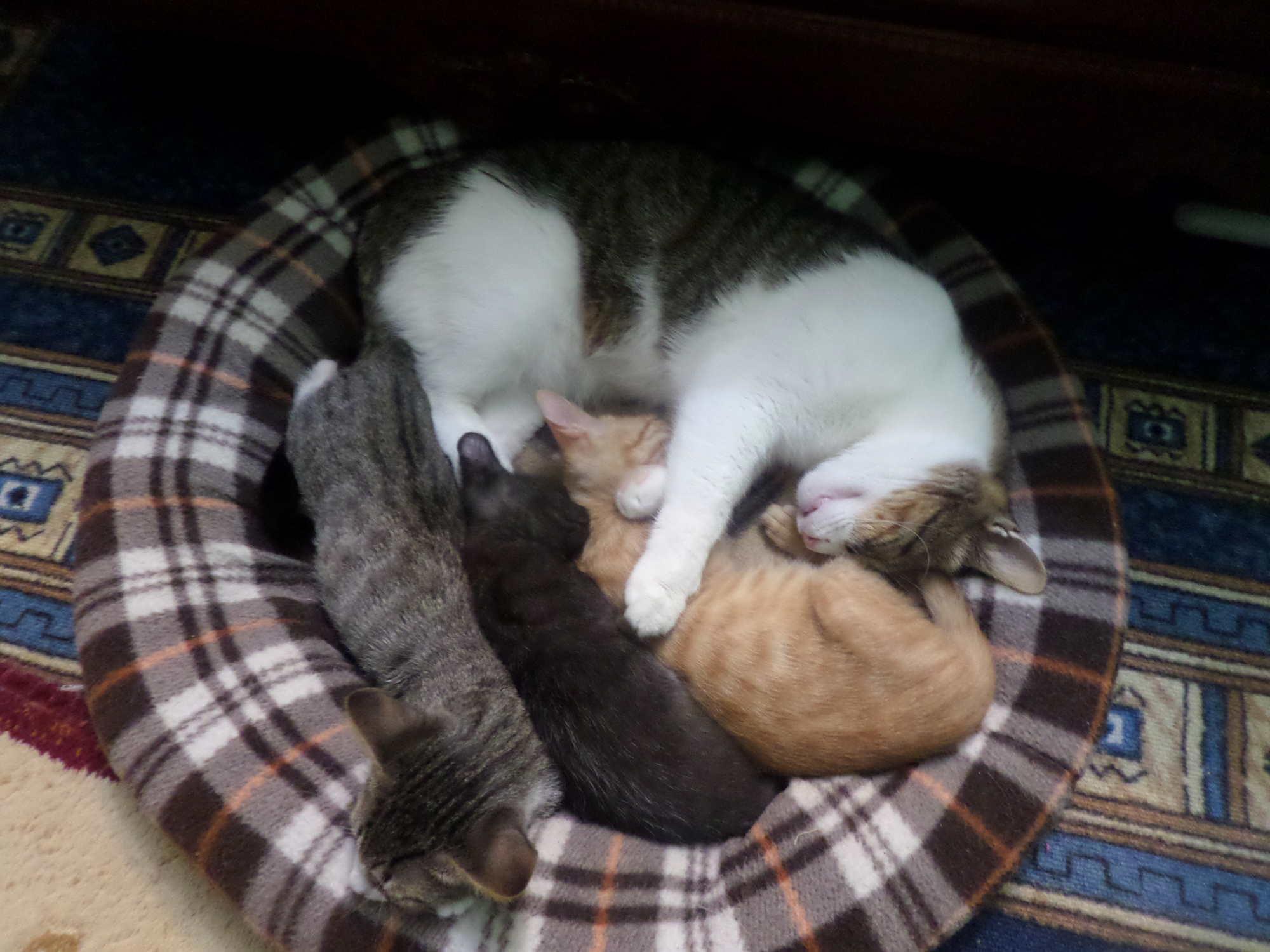 Нет, вы не подумайте, что он добровольно. Поначалу он гонял их, шипел и бил лапой, мол, реальные пацаны с мелюзгой не якшаются, но кого еще в нашем доме не укротили эти тараканы? Муж тает при их появлении, особенно Кузяка его делает на раз-два. Но эта жужелица кого только не сделала, хотя выдра еще та.