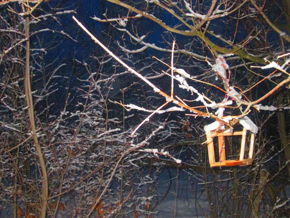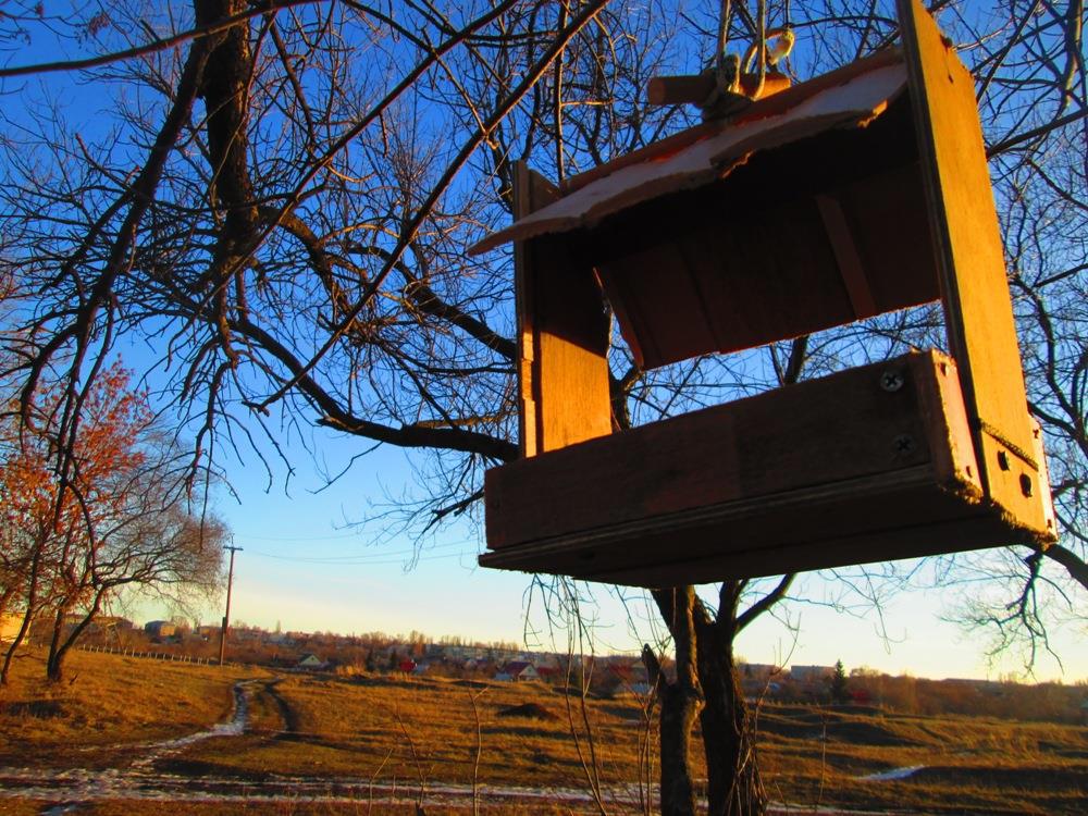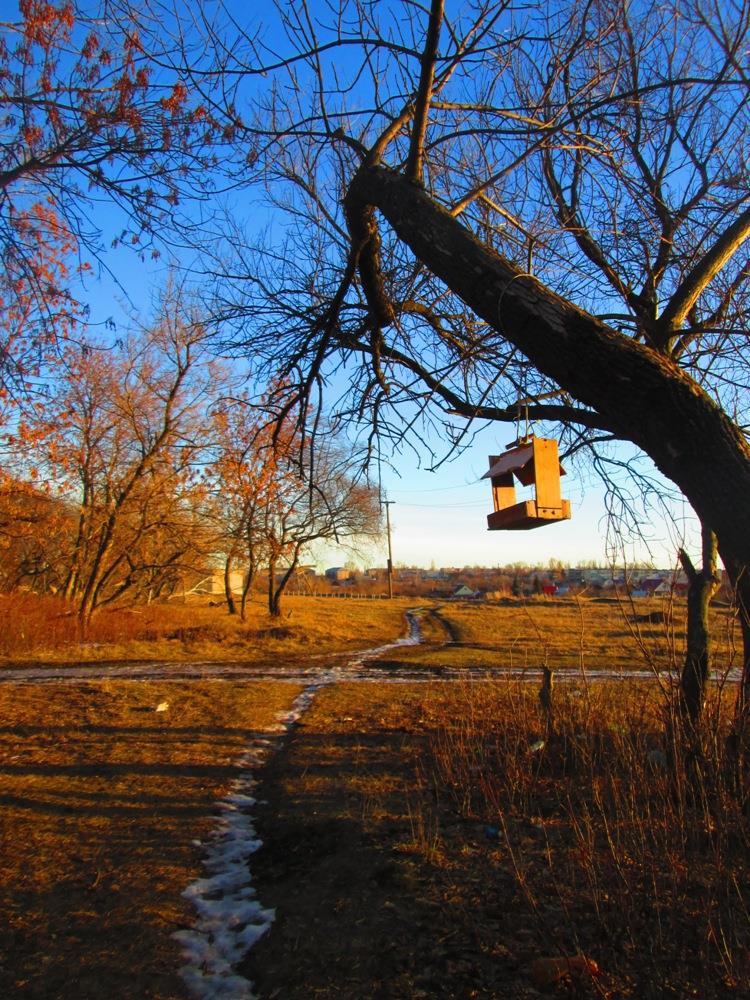 Но когда жили на той квартире с подвохом, рядом была роща. Я смастерила кормушек и навешала на деревья, и всю зиму мы ходили прикармливать птиц.