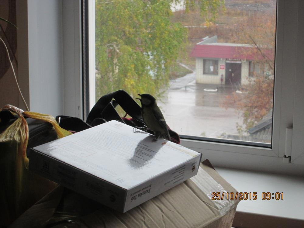 В квартире было жарко, отопление там очень хорошее. Мы раскрыли окно проветрить комнату. И что вы думаете? Влетает к нам синица!