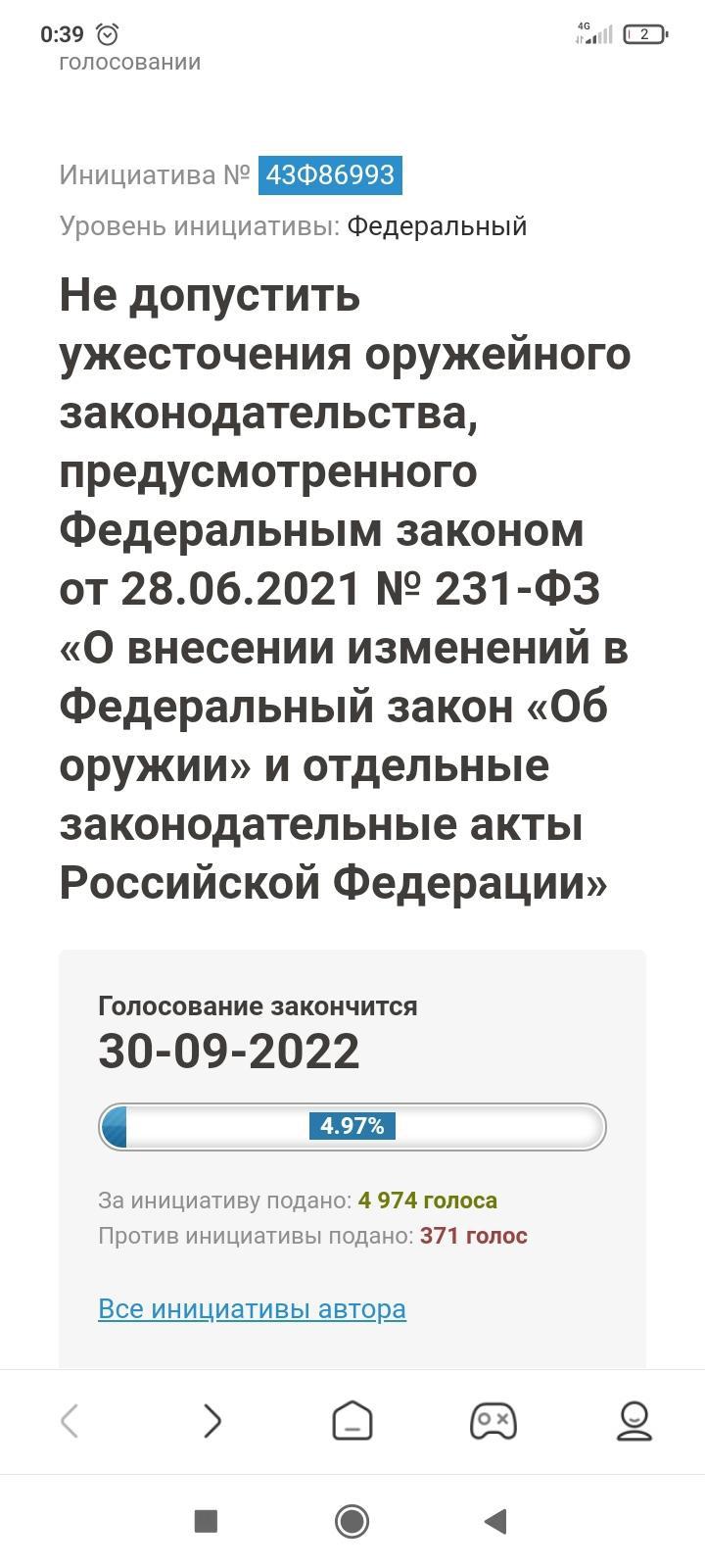 Автор: ЯгерГолосуйте за отмену поправки об ограничении доступа к оружию (Для этого требуется аккаунт в Госуслугах)