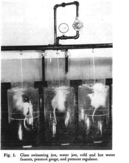 Рихтер отмечал, что Брэдфорд изучает поведение примитивных, диких сообществ, а значит, существует вероятность, что более разумные люди бы не умирали в таких ситуациях. Это подтолкнуло Рихтера провести свой эксперимент. Так он отобрал группу из 12 одомашненных крыс, поместил их в специальные ведра с водой и засек время, за которое животные утонули. Первые три крысы умерли очень быстро — за несколько минут, а оставшиеся девять продержались пару суток. Аналогичный эксперимент ученый провел с дикими крысами. Грызуны сдавались намного быстрее домашних животных. «Почему свирепые, агрессивные и дикие крысы погибают сразу после погружения в воду и лишь небольшое число прирученных домашних крыс сдаются так же рано?», — писал биолог.