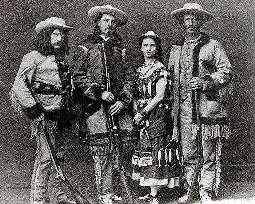Суровые люди фронтира... ох, простите, это фото театрального представления. В середине знаменитая балерина, Бантлайн (трезвый?) слева, рядом с ним грозный Баффало Билл (думается, трезвый).