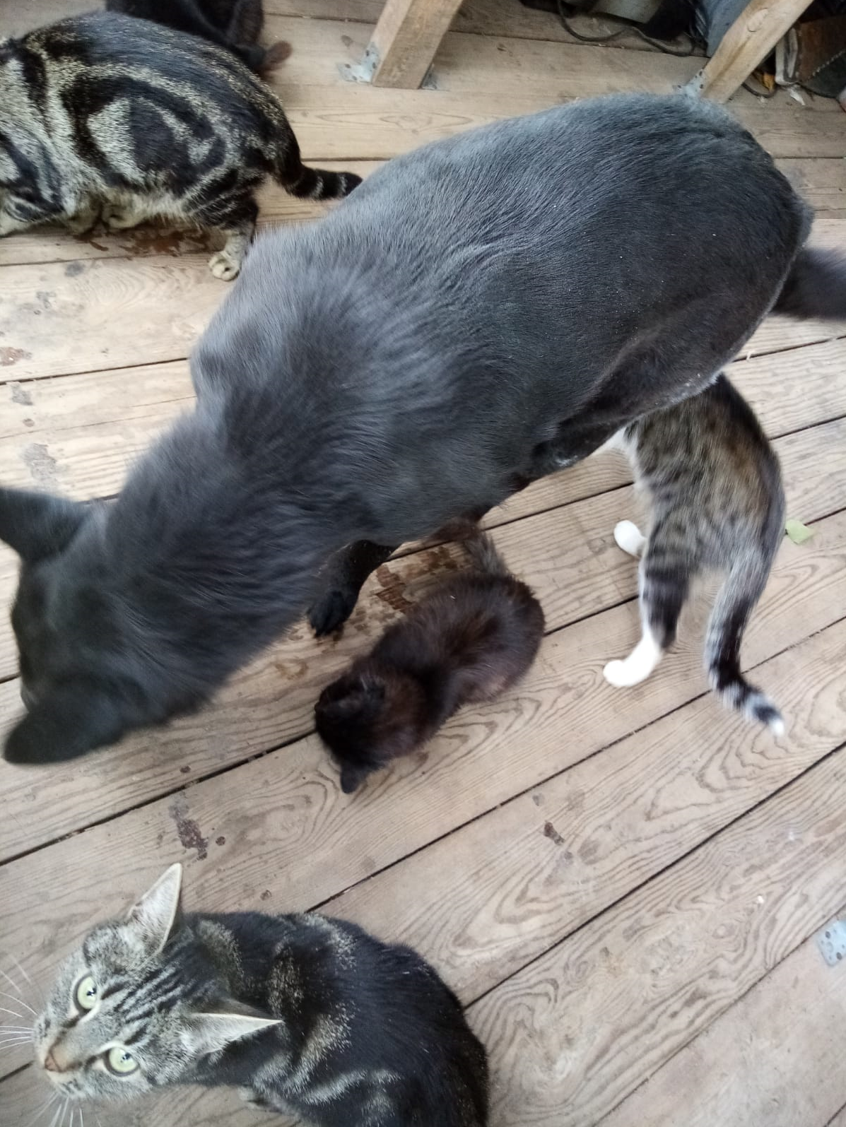Чугамба любит всех, но облизывает только котиков... Причём всех кто попадается... Дымку и Кошмарика больше чем родная мама Бася облизывает.. единственная. Это единственная фотография Неуловимой Чу где можно рассмотреть мордочку- просто скрывается от камеры...