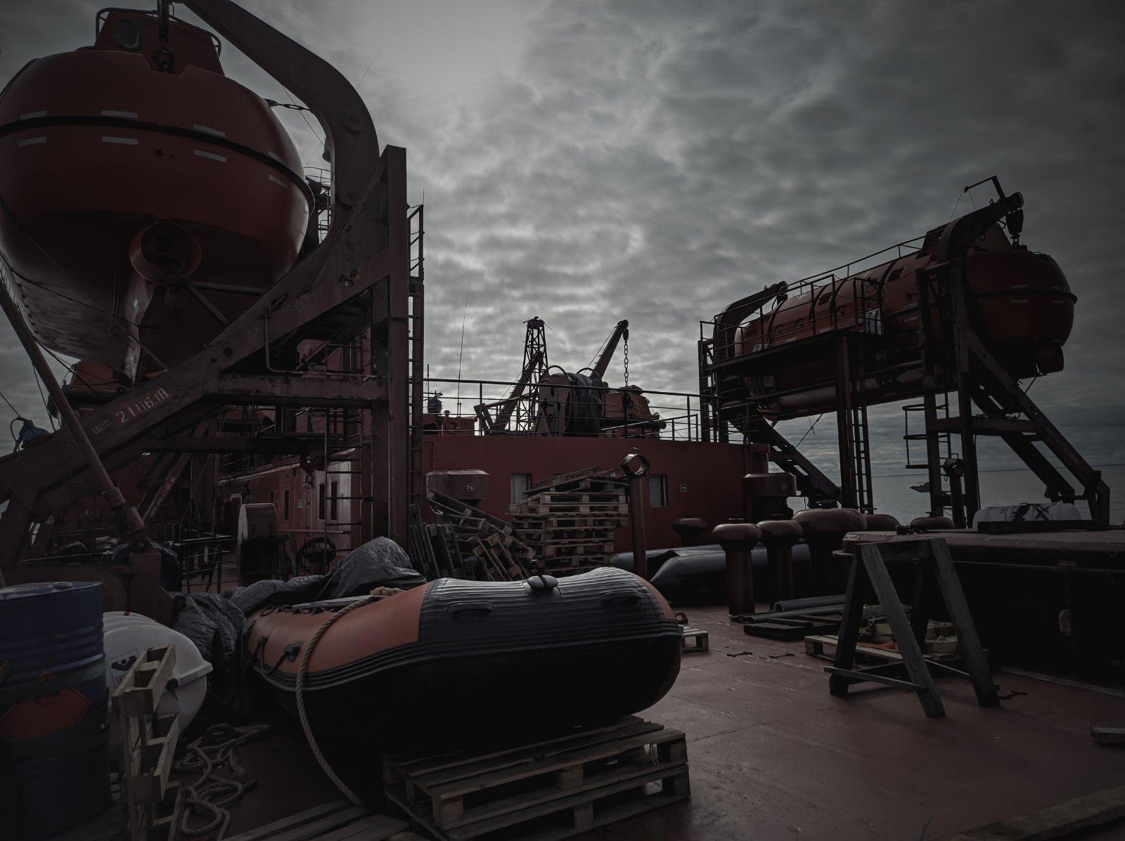 В мозг ввинчиваются пронзительные гудки. По радио объявляют учебную тревогу. Необходимо надеть спасжилеты и занять места в спасательных шлюпках. Ничего сложного, скажете вы? Три раза «ха». Без помощи старшего товарища Павла, не единожды ходившего на кораблях в экспедиции, с этим мы вряд ли бы справились так быстро. Ведь сигнал так и бьет по ушам, подгоняет: скорей, быстрей, мы тонем!