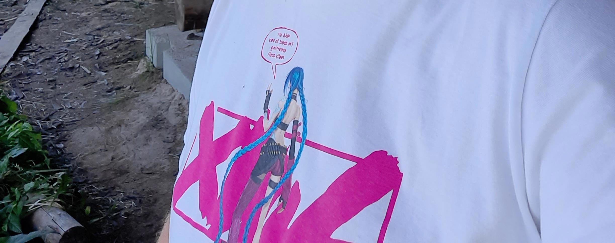 В одном магазине одежды была распродажа, а большому дылде (чуть дилдо не написал) по имени Basill (имя вымышленное, чтобы никто не догадался) нужна была футболка. Он взял какую-то белую с девушкой у которой синяя шевелюра.