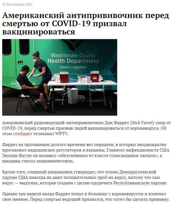 С идиотизмом нужно бороться. А призывы не прививаться я могу признать только идиотизмом. Или провокацией. Не факт, что те, кто яростно призывает не прививаться, сами действительно без прививки. Может, они действуют по указке тех, кто хочет, чтобы в России умерло как можно больше людей?