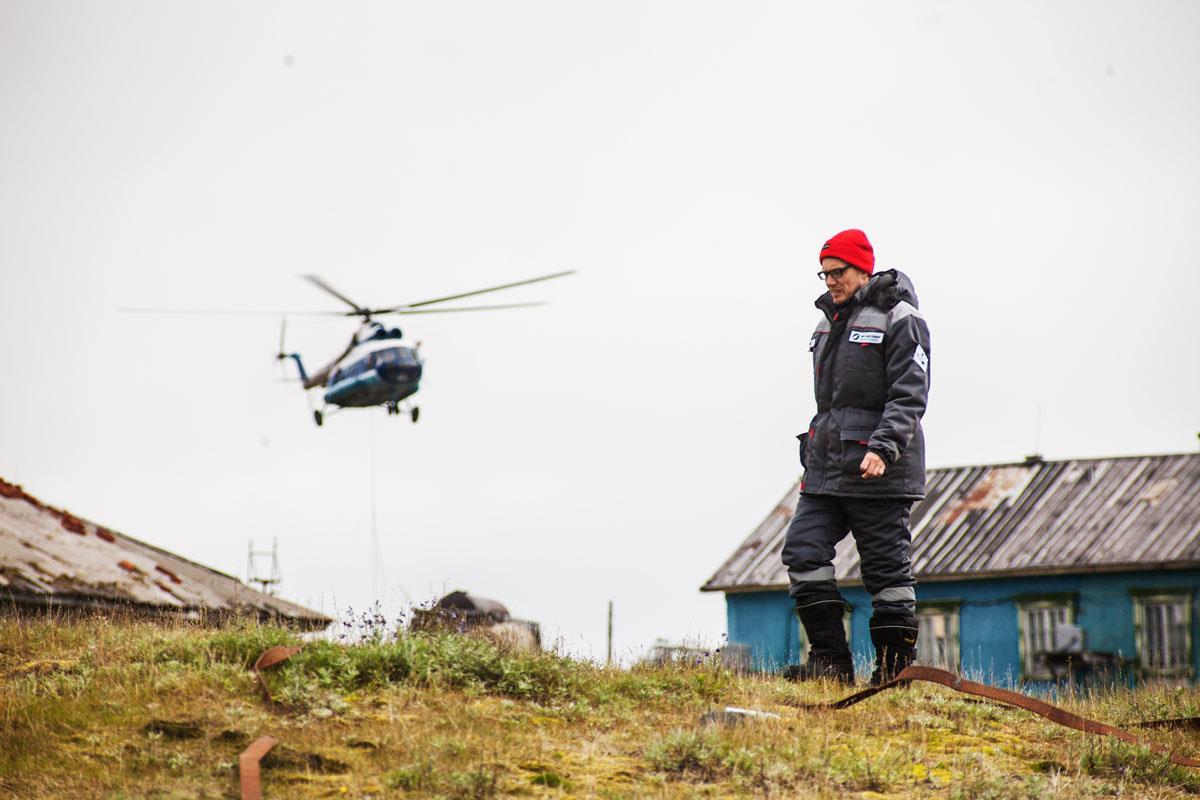 Если верно последнее, то этот шаг был весьма торопливый, сумбурный — под грозный рев лопастей Ми-8, пригибаясь к земле и придерживая шапку, мы посыпались с борта вертолета. Торопливо побросали многочисленную поклажу наземь, уселись на корточки, придерживая вещи — и вертолет тотчас взлетел. Погрузочные работы с корабля на метеостанцию прекращаются только глубокой ночью.