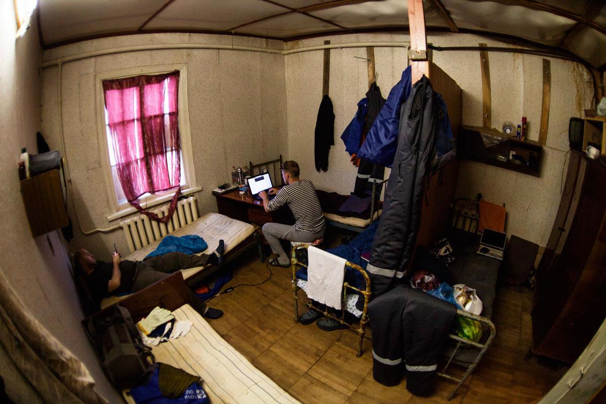 Обживаемся на новом месте: условия спартанские, но экипаж у нас опытный, так что нам не привыкать. Считанные минуты — и дальняя заброшенная комнатка метеостанции преображается.