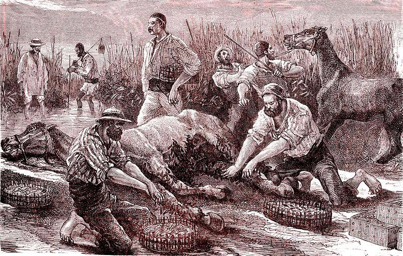 Ну, а так как торговля пиявками по всей Европе была самым прибыльным делом, особенно во Франции, которая в XIX в. год употребляла от 80 до 100 млн. пиявок, то образовалась даже новая профессия - собиратель пиявок. Правда больше всего страдали от такого бизнеса кони, которых загоняли в воду и держали там пока на них не налипнет побольше кровососов... Есть даже гравюра...