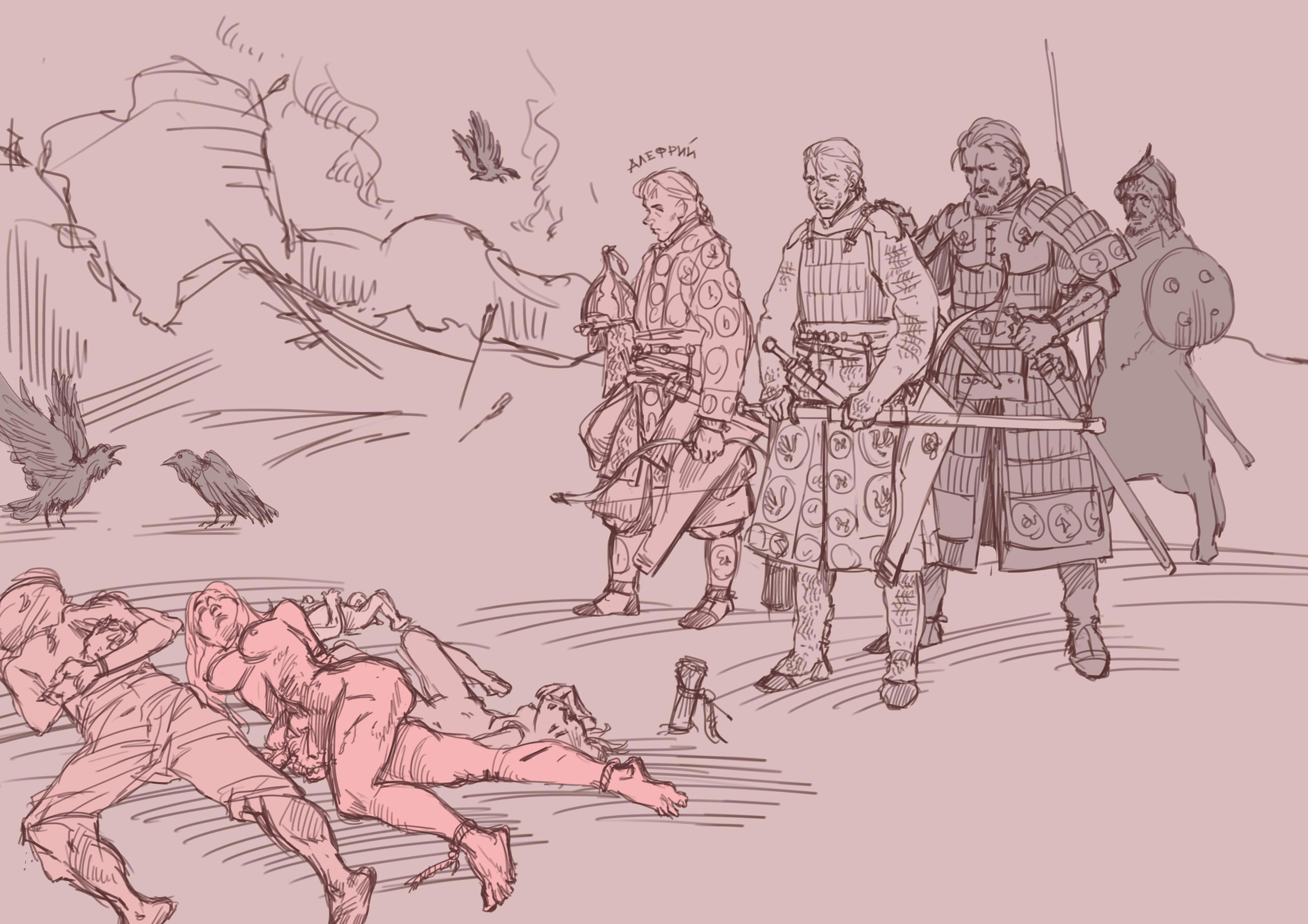 Полсотни скетчей и рисунков в серии. Решил начать доводку скетчей и раскраску в таком вот стиле: