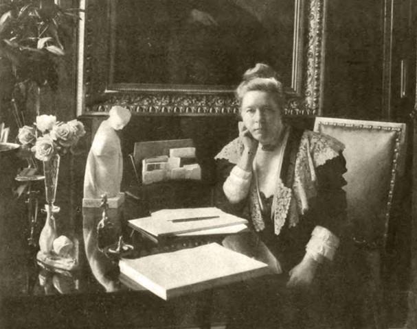 Фото: Сельма Лагерлёф в 1909 году и за работой в 1910-е годы