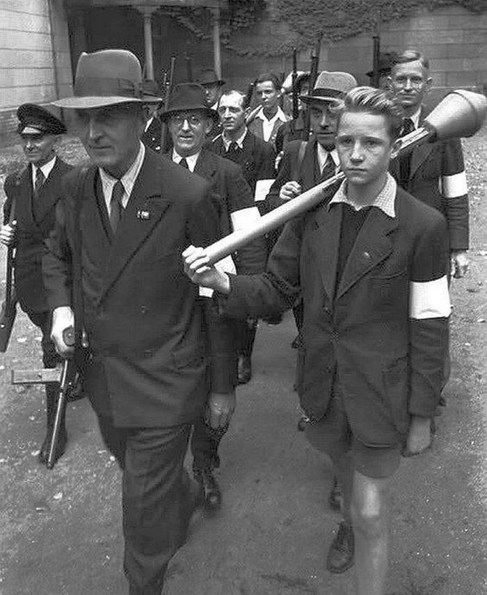 Во-первых, за формирование таких подразделений, кроме государственных органов, взялось сразу несколько полувоенных организаций «Рейха» (как на том кадре с Гитлером мальчишки из «Гитлерюгенда»). Большая часть документов об этом просто погибла. Поэтому сейчас сказать, сколько было по численности того «фольксштурма» уверенно никто не сможет. Ясно только одно – компания была очень разношерстная: