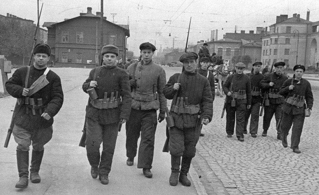 А вот «Кировская» дивизия народного ополчения отправляется на фронт. Все полностью экипированы и вооружены: