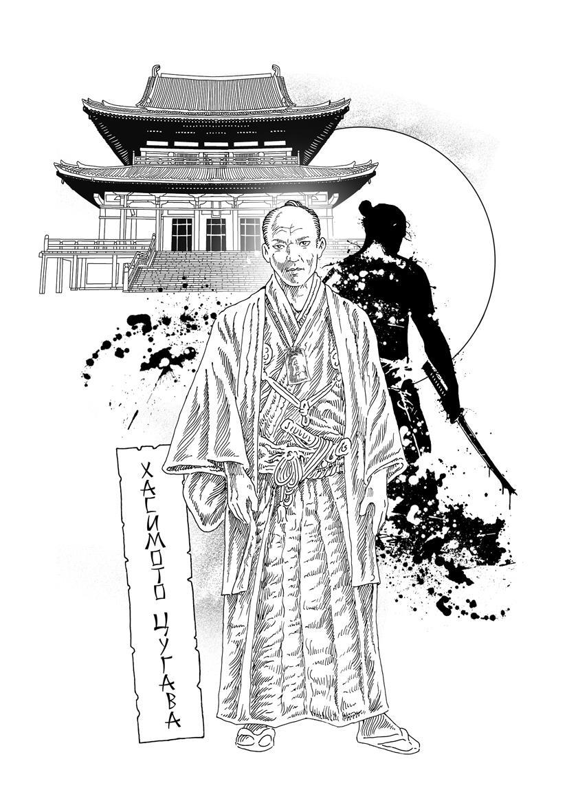 Шло время, человек медлил. Застыл, как если бы забыл, что собирался делать. Затем он обернул клинок – ту часть, что ближе к цубе – плотной бумагой и, поудобнее ухватившись за импровизированное продолжение рукояти, направил острие себе в живот.