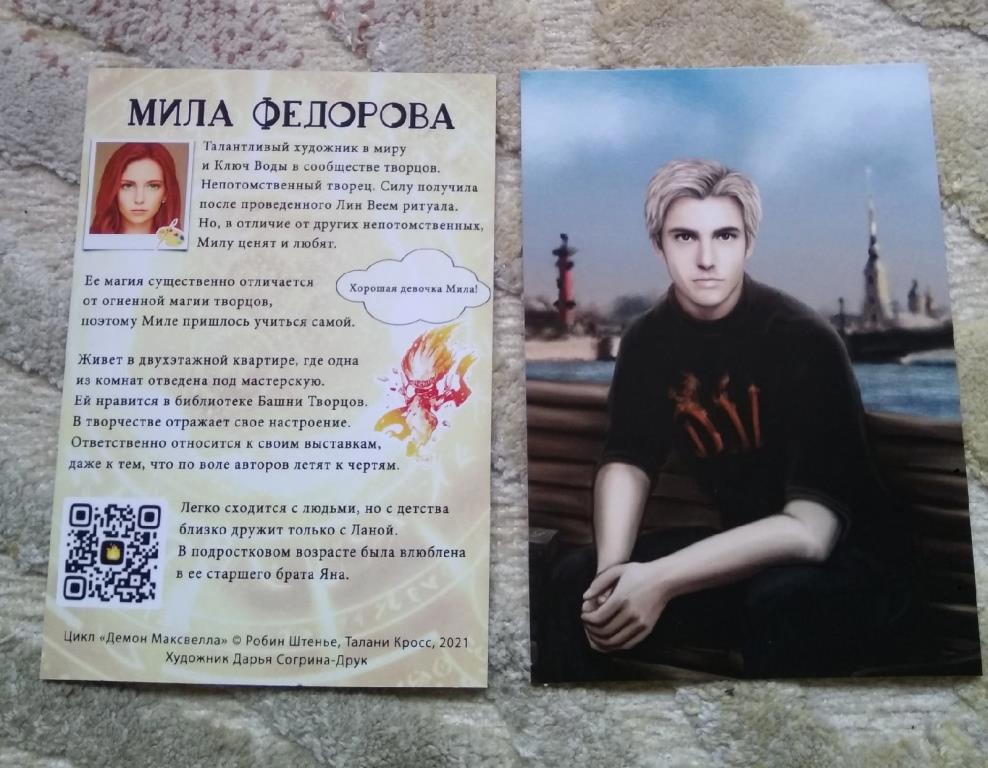 Вообще, с моей памятью на имена, они бы мне всегда пригождались) Так что спасибо Робину за шпаргалки (я ещё не читала ни Рубежи, ни Творцов, и теперь пойдёт как по маслу), по совместительству красивущие открытки, и приятный сюрприз.