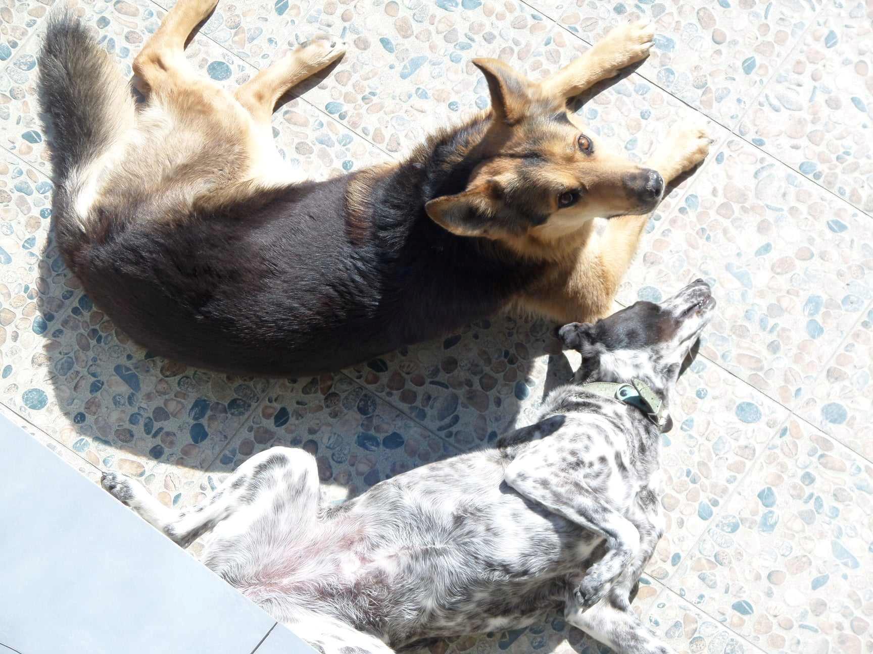 Люси, так мы назвали девочку, сразу же начала строить его по струнке, выгнала его из большой будки и поселилась там сама. А Рико досталась будочка поменьше, где он молча сворачивается колбаской и спит. Кто ж с женщинами спорит? Себе дороже. Все лучшее всегда достается этой наглой морде Люське. И только при разделе еды все, что Рико дается, никто не смеет отобрать, пока он не наестся, порвет как тузик грелку. За еду может. Наголодался ребенком на улице. Поэтому тут Люська стоит и ждет своей пайки.