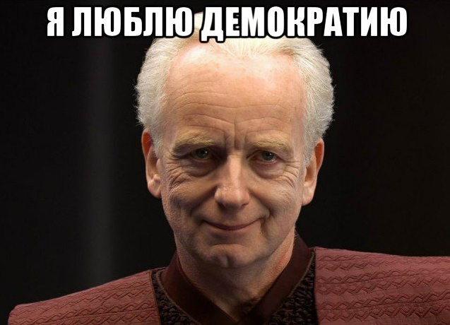 Не скажу, что все в первом фильме было рассказано идеально. Сенат через-чур легко решил избавиться от старого канцлера. Учитывая то, что правительство Республики было сильно коррумпировано, трудно поверить, что они с таким энтузиазмом снимут с поста человека, при котором легче проводить свои грязные делишки. И еще труднее поверить, что они выберут человека, который обещает эту коррупцию искоренить. Вотум недоверия к Верховному канцлеру, выдвинутый королевой Набу, должен был заглохнуть и утонуть в бюрократической волоките. Но предположим, что Палыч умело сыграл на чувствах радикальных настроенных членов Сената и подкупил остальных, с помощью денег Торговой Федерации.