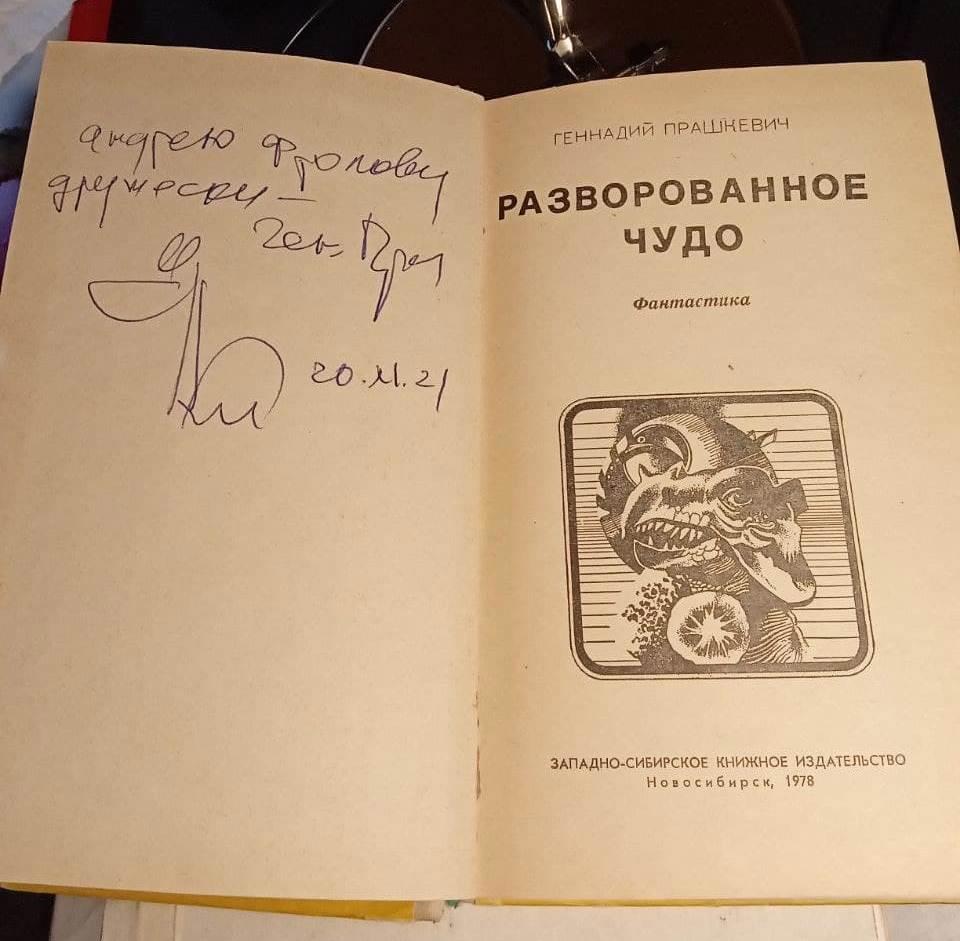 Затем завертелось. Мусорил визитными карточками, сходил к ученикам и учителям школы № 99 почесать языком за фантастику (спасибо за приглашение, интерес и заданные вопросы!). Потом слушал Геннадия Прашкевича и Татьяну Толстую, специально остался на чтение (ох, зря Татьяна Никитична наговаривает на свою манеру читки, все там норм). Получил от новосибирского мэтра автограф на немолодой книге, которая для меня очень много значит еще с детства.
