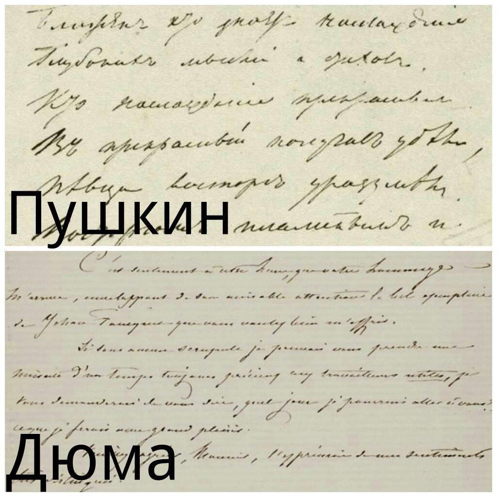 Почерк Пушкина и Дюма-отца неотличимы. Ранние стихи Дюма написаны александрийским стихом, как и "Евгений Онегин".