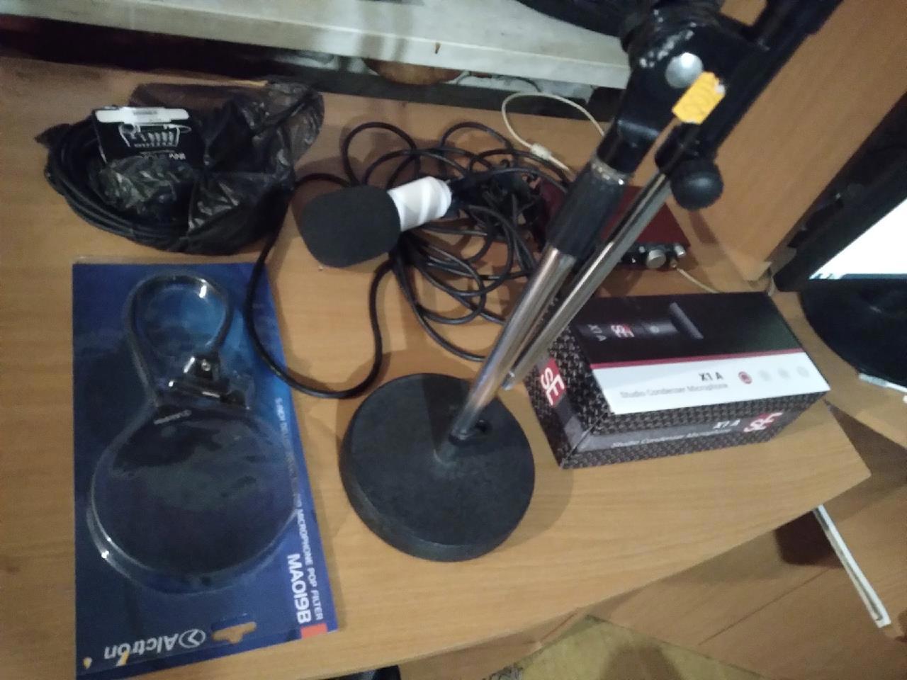 Обновил недавно звуковую аппаратуру, став обладателем прекрасного конденсаторного микрофона. А еще человеческий штатив и рамка. Аудиоинтерфейс все тот же, но и его я рано или поздно отправлю в полет через пусковой шлюз форточки за все намотанные километры нервов =)
