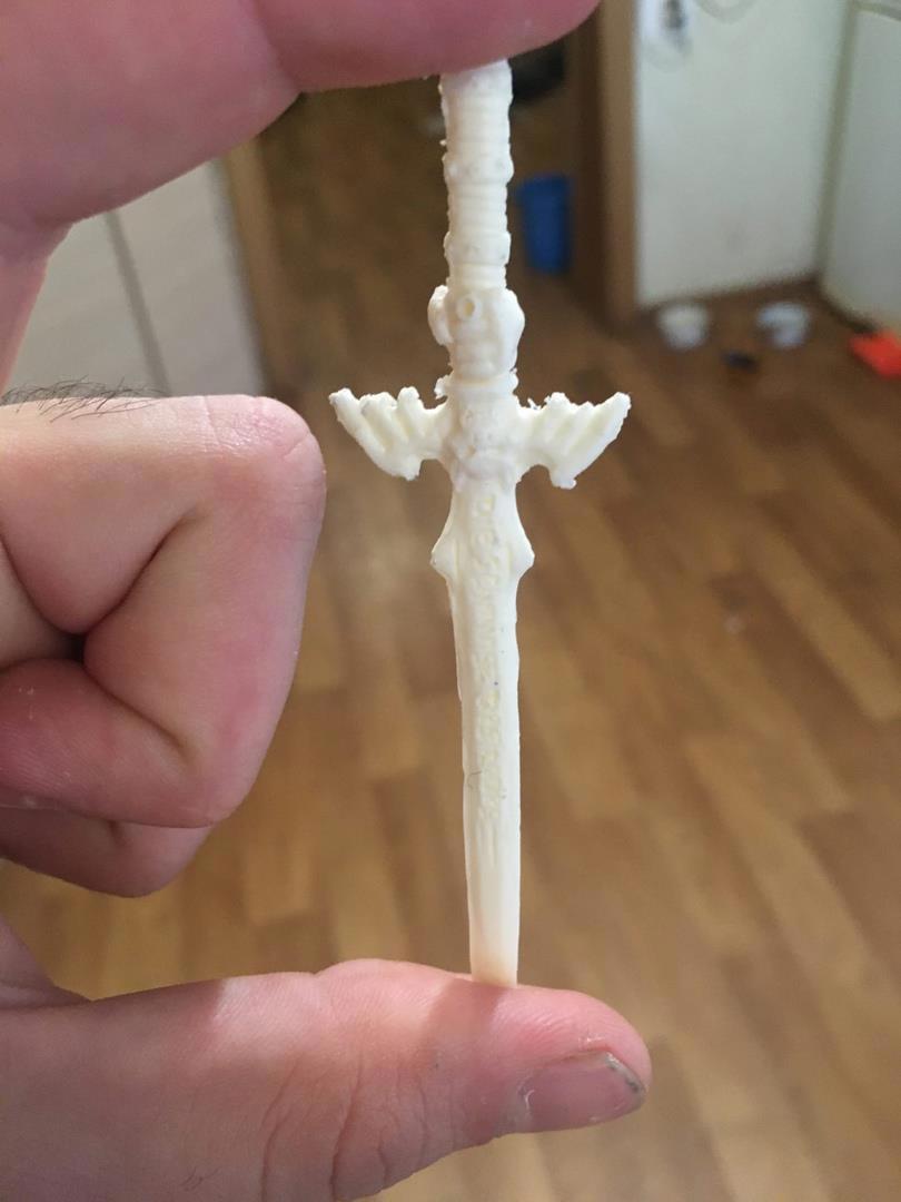 Несколько невзрачные фото только что вытянутых из форм пластиковых подделок. Однако, не всё так просто. Если выставленный ранее демонический бюст, стал закреплением уже известного материала по формовке и отливке фигур, то данные модели - есть, ничто иное как, важнейший скачок вперёд. Теперь я знаю, что могу переводить в пластик даже столь мелкие детали (высота меча - 10 см), а значит будущие миниатюры, коих ныне запланирована целая плеяда, превращаются из обыкновенной задумки в реальный проект и более того, будут представлять собой мелкосерийное производство. Конечно, ещё очень многое предстоит узнать и совершить множество ошибок. Впрочем, на мой взгляд, подобный труд - справедливая плата за самостоятельно приобретённый навык, а главное, за важный шаг на пути к детской мечте.