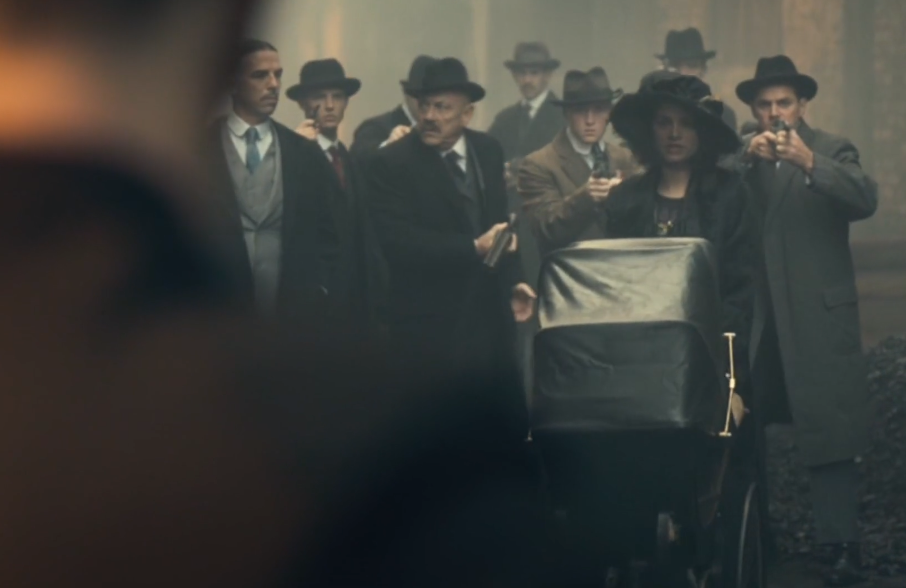 У меня есть вопросы, по поводу кульминации конфликта с Билли Кимбером, с главным авторитетом Бирмингема, в финале первого сезона. Главный герой хотел его «подвинуть», дабы пригреть его букмекерский бизнес, но провалился. В итоге Билли, с «армией» головорезов пошел штурмовать район, который держали Шелби. Депрессивный тон повествования, как бы намекал, мол, это все закончится, как минимум кровавой перестрелкой. И вот главари сходятся в центре какой-то улочки. Все при стволах, даже кто-то с пулеметом присутствовал. Силы типа неравны, и банда Острых козырьков была в очень невыгодном положении. И тут выходит на сцену сильная и независимая женщина с грудным младенцем в коляске, прям меж двух огней и начинает заливать, что-то про то какие мужики тупые, надеясь растопить своей горячей речью сердца кровожадных бандитов.