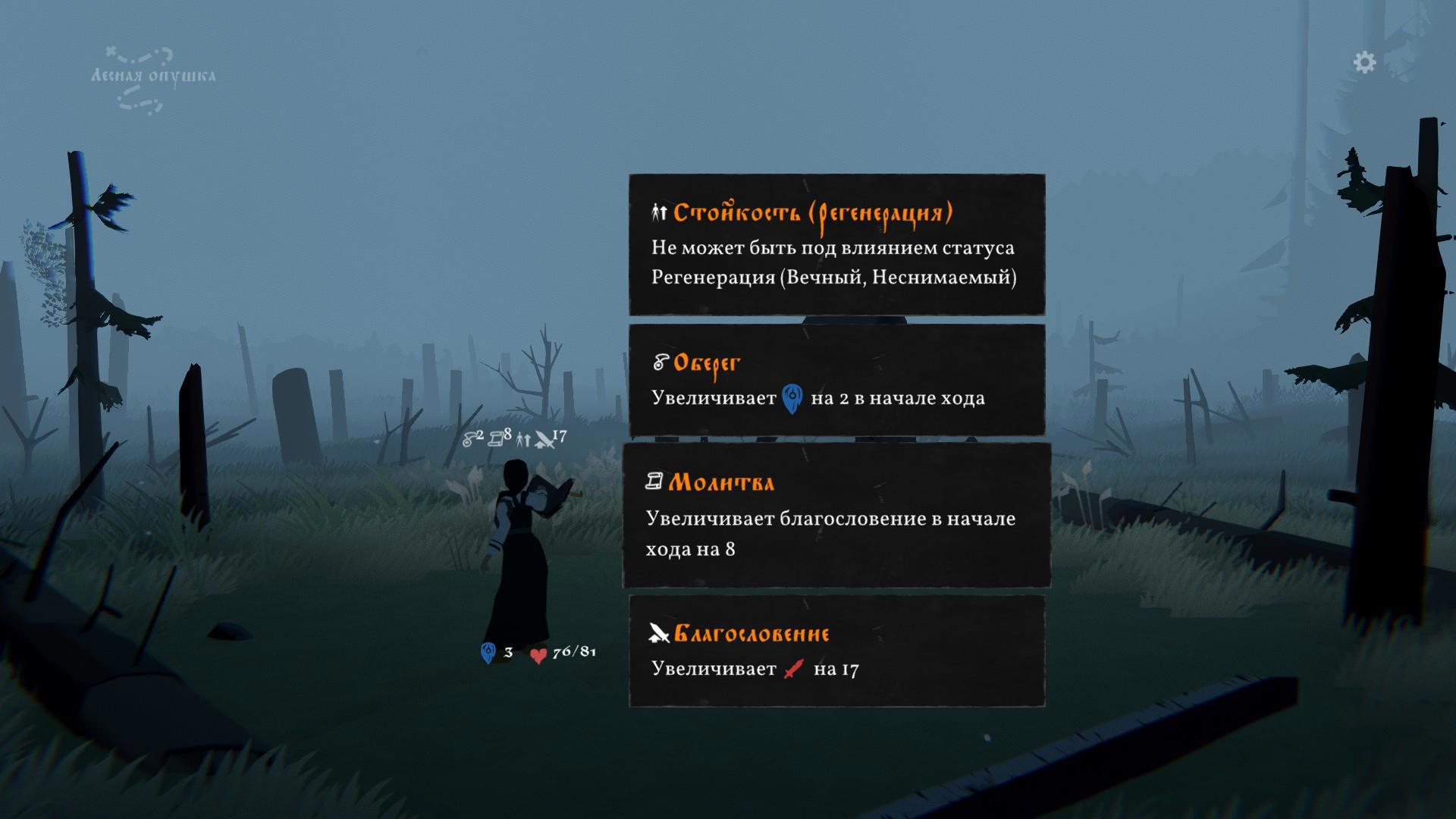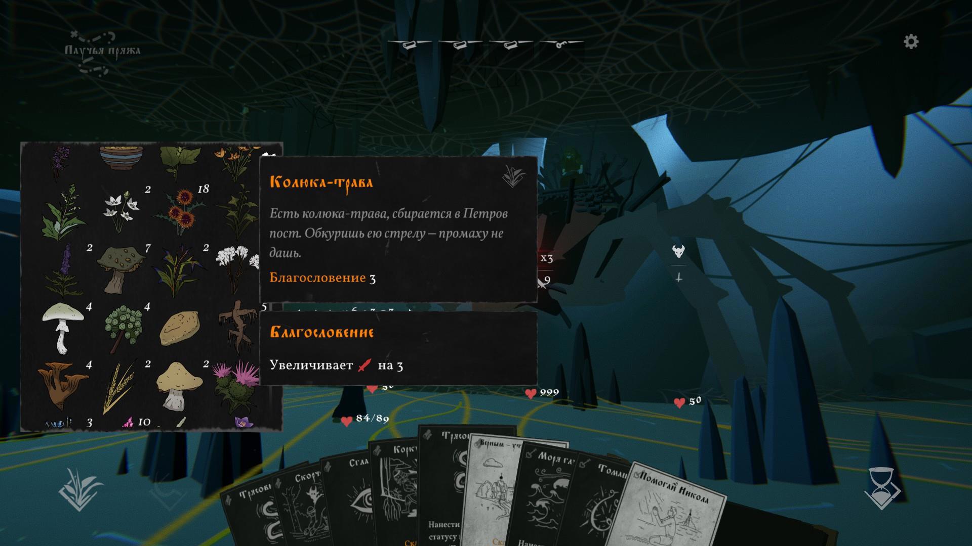 Также в игре присутствуют немногочисленные головоломки, и возможность перекинуться в подкидного. Особенно весело играть в дурака с нечистью, которая отчаянно мухлюет посредством колдовства. В принципе, выучив соответствующие скиллы, Василиса также сможет превращать ненужные карты в козыри, но лично я не вижу смысла тратить бесценные очки навыков на подобную ерунду. Хотя, замечу, что игрой в карты можно заменить ряд сражений, так что решайте сами.