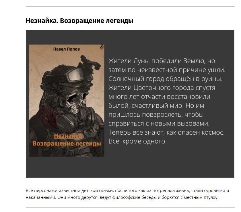 А если серьёзно, первой книгой, которую я опубликовал на этом сайте, был фанфик по Незнайке. Кстати, вот он https://author.today/work/49080.