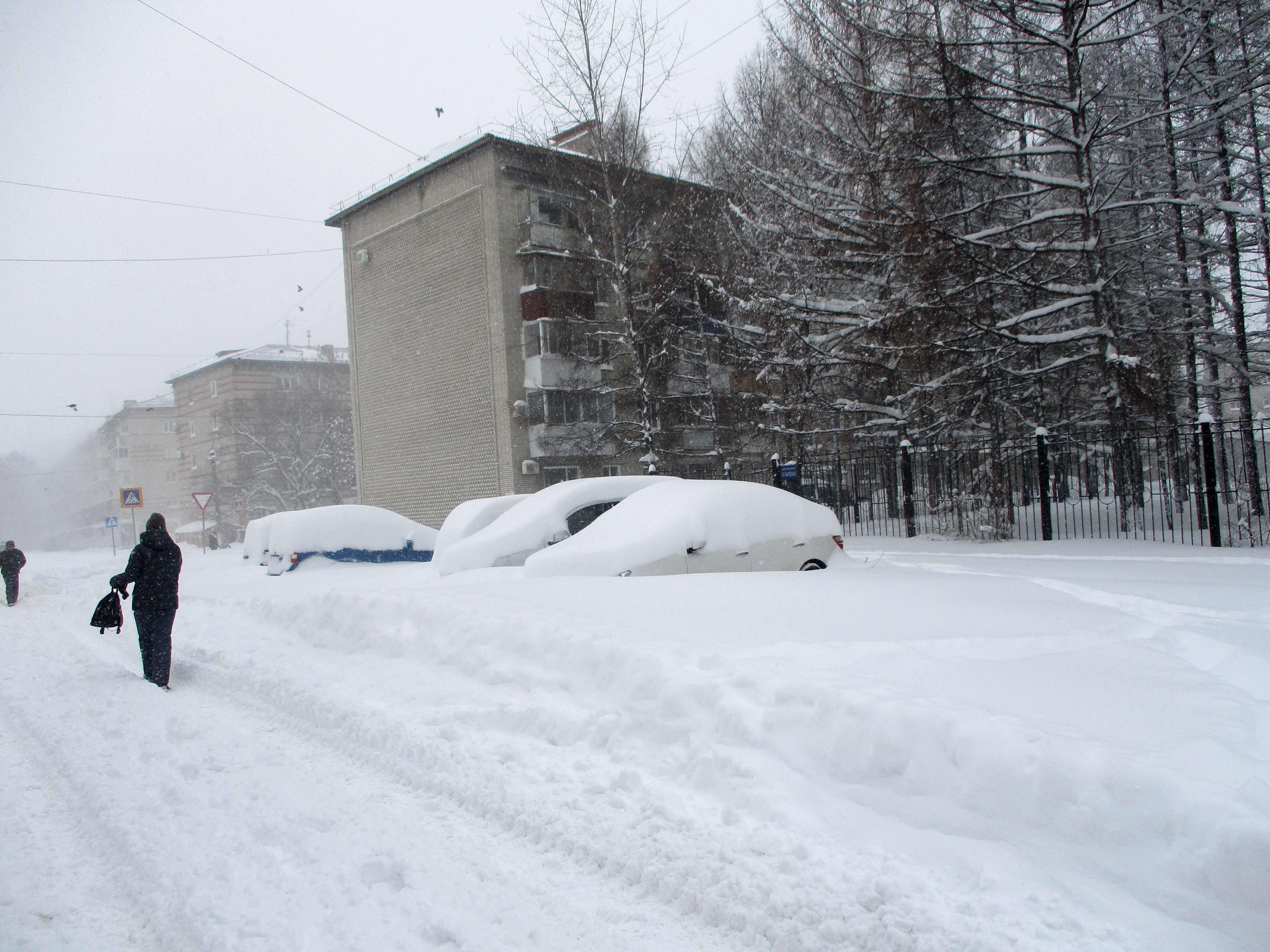 начиная с понедельника у нас снегопад. В понедельник и вчера была настоящая метель с ветром. Замело так, что уже 2 дня общественный транспорт не работает, дети не учатся, я вчера даже героически дошла до работы по пояс в снегу, но нас отпустили домой, так как дошли не все. Сегодня сразу с утра разрешили не приходить. Сегодня уже такого снегопада нет. Небо прояснилось, но улицы не особо расчистили.