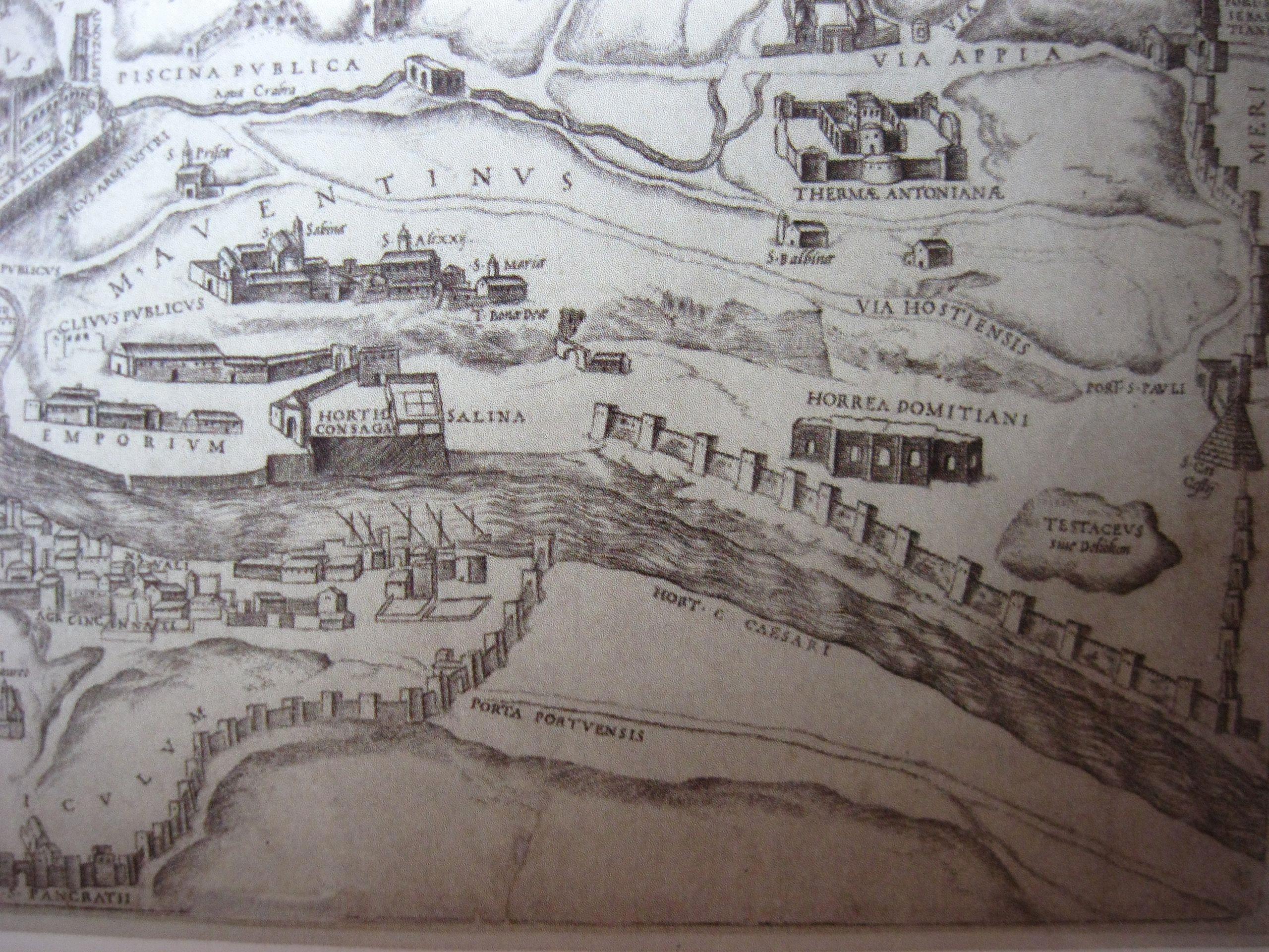 Монте Тестаччо на плане Рима от 1561 года (возле правого края плана, рядом с пирамидой Цестия).
