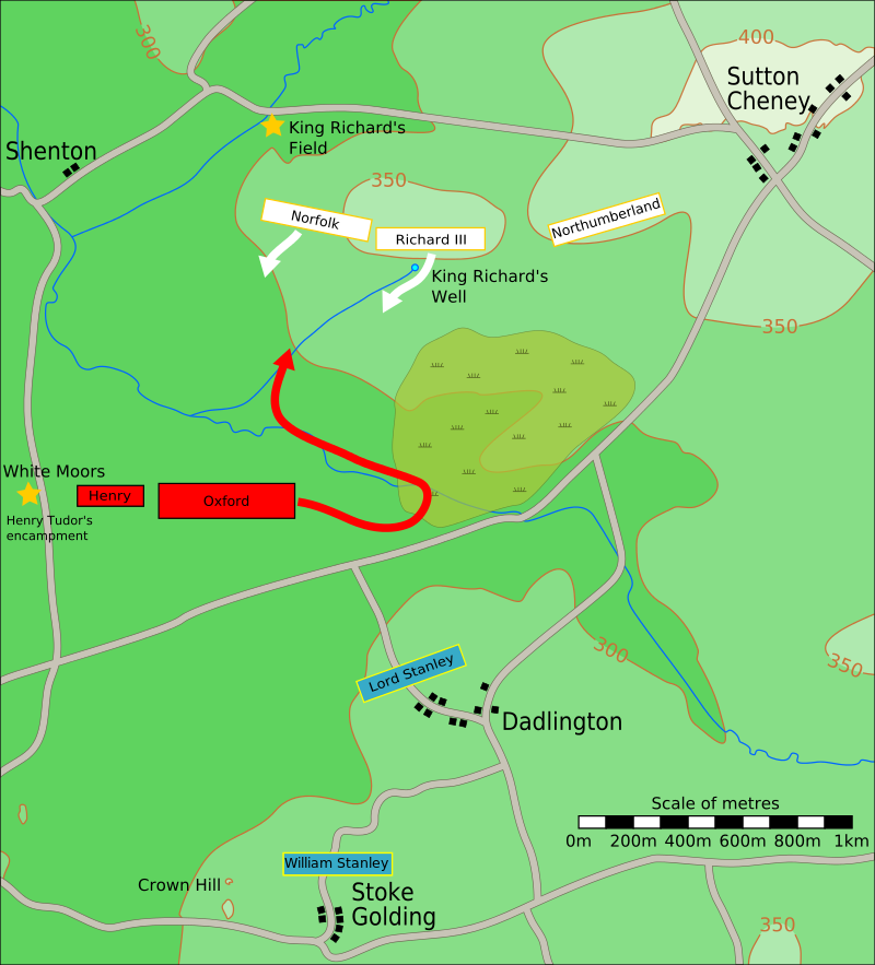 4-6) Ноль заложников и самый настоящий разномастный сброд из местных феодальных армий, беглецов ланкастеров, изменников йорков, французов, бургундцев, валлийцев и кого угодно. Формально правда всем этим командовал Джон Де Вер, 13-й граф Оксфорд, что являлся главным военным советником Генриха. Он был знатоком военного искусства и ранее в битве при Барнете (1471 год) руководил правым крылом Ланкастеров, где разбил полк противника, выступивший против него.