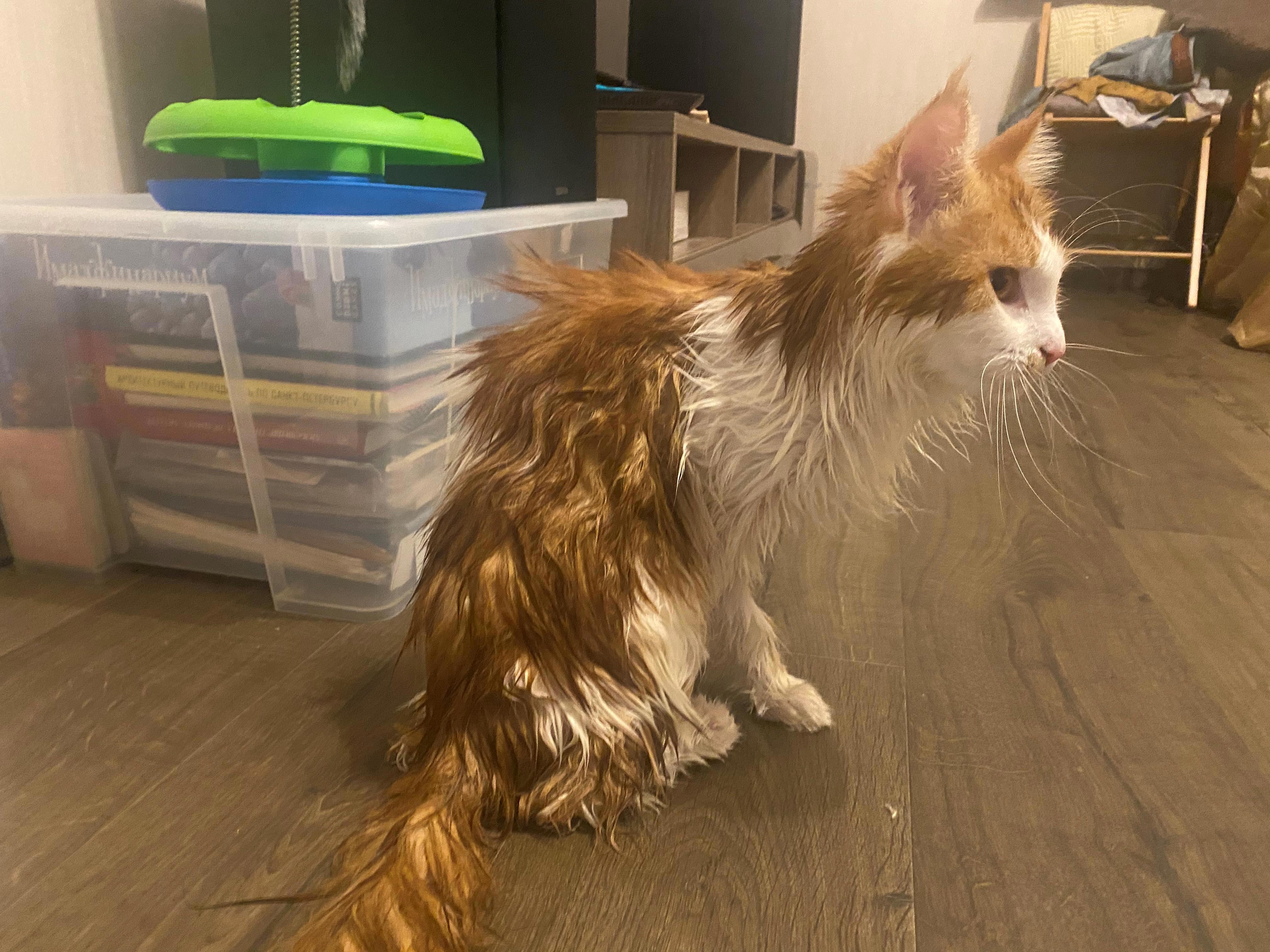 Мокрая шерстка вся слиплась,