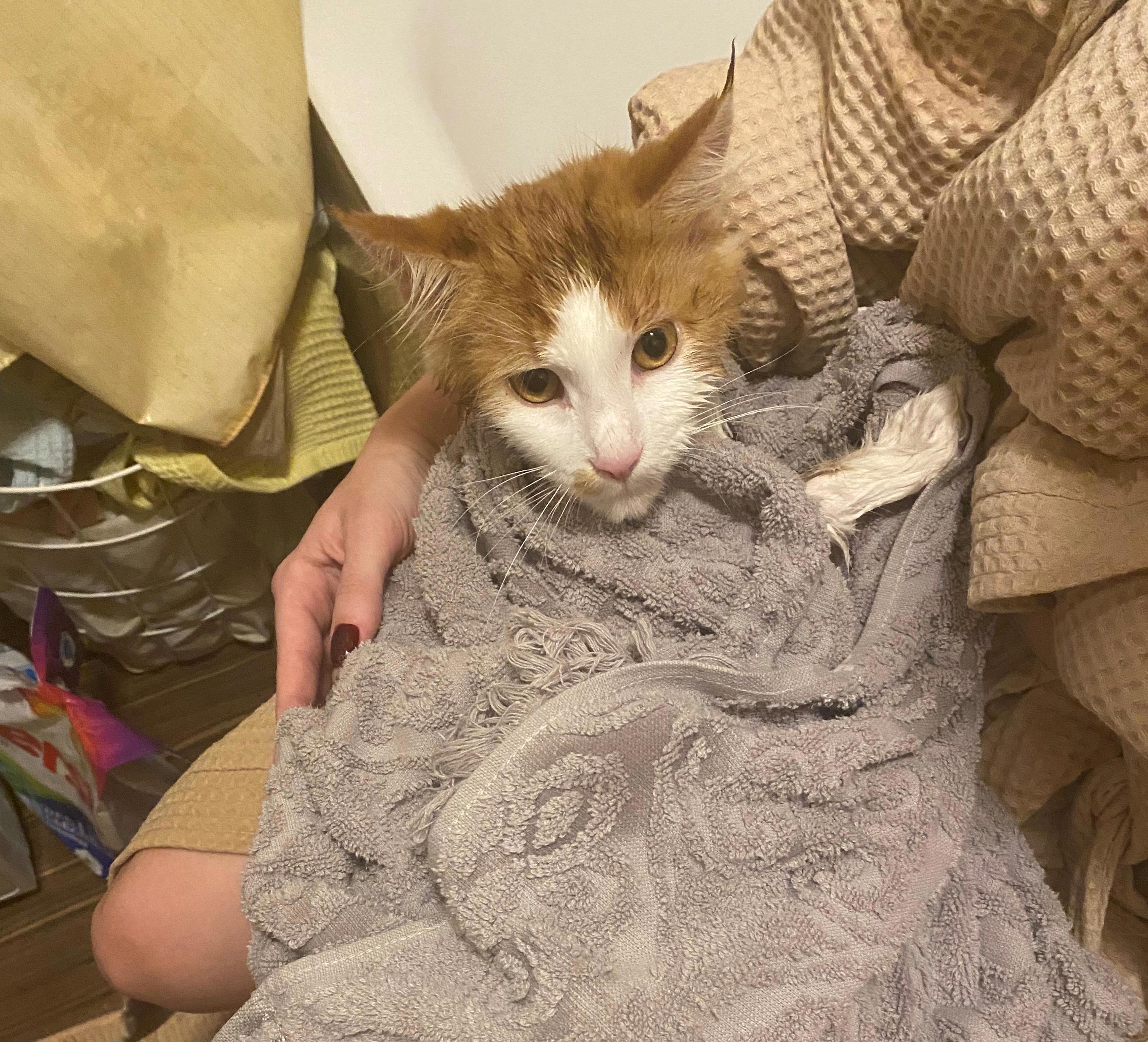 Так случилось первое Кнопино настоящее купание с шампунем и банным полотенцем