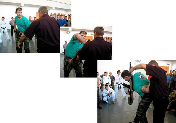 Поразительно, когда спарринг-партнер произвел угрозу выстрела в живот из автомата, Александр Иванович обезоружил его спокойным, но стремительным движением – отсоединил магазин и этим же магазином нанес два точных удара по рукам, держащим автомат – оружие грянулось оземь. Так просто! (А мог бы и по голове дать).