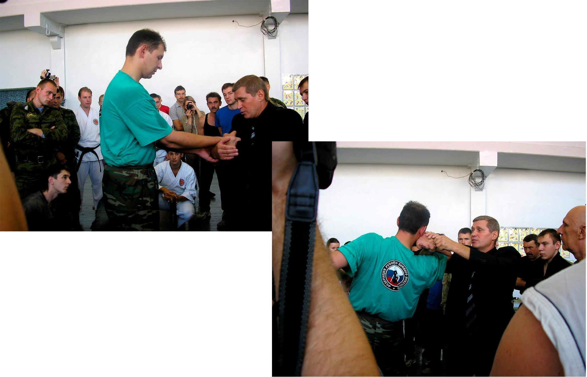 Занятия Заслуженный тренер России и инструктор по боевой подготовке Александр Иванович начал даже не сняв пиджака и галстука. И это не удивительно: ведь он мастер русского стиля, который позволяет сражаться в любой одежде, в любое время и в любых условиях (на асфальте, в темноте, на лестнице, по пояс в снегу в узком коридоре и на открытой площади).