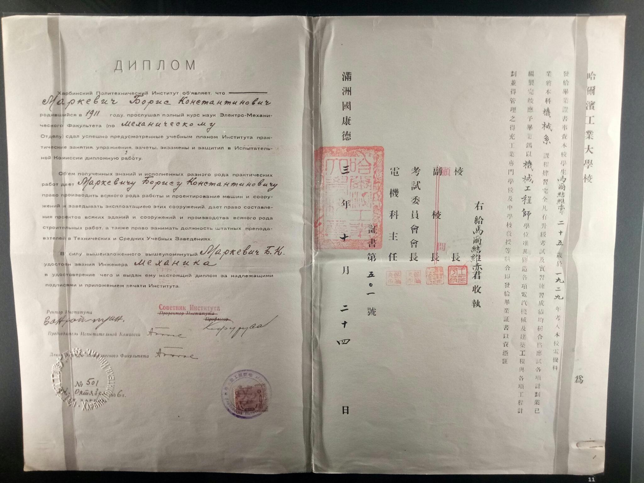 Забавно - вот диплом о высшем образования, выданный де-факто на территории Японской империи и выписанный на русском и китайском языках. Де-юре этот двуязычный диплом выдан в "Великой Маньчжурской империи", так официально называлось государство, которое мы обычно именуем Маньчжоу Го. На момент выдачи диплома сия "империя" была официально признана только Сальвадором, Ватиканом и собственно Японией...🧐