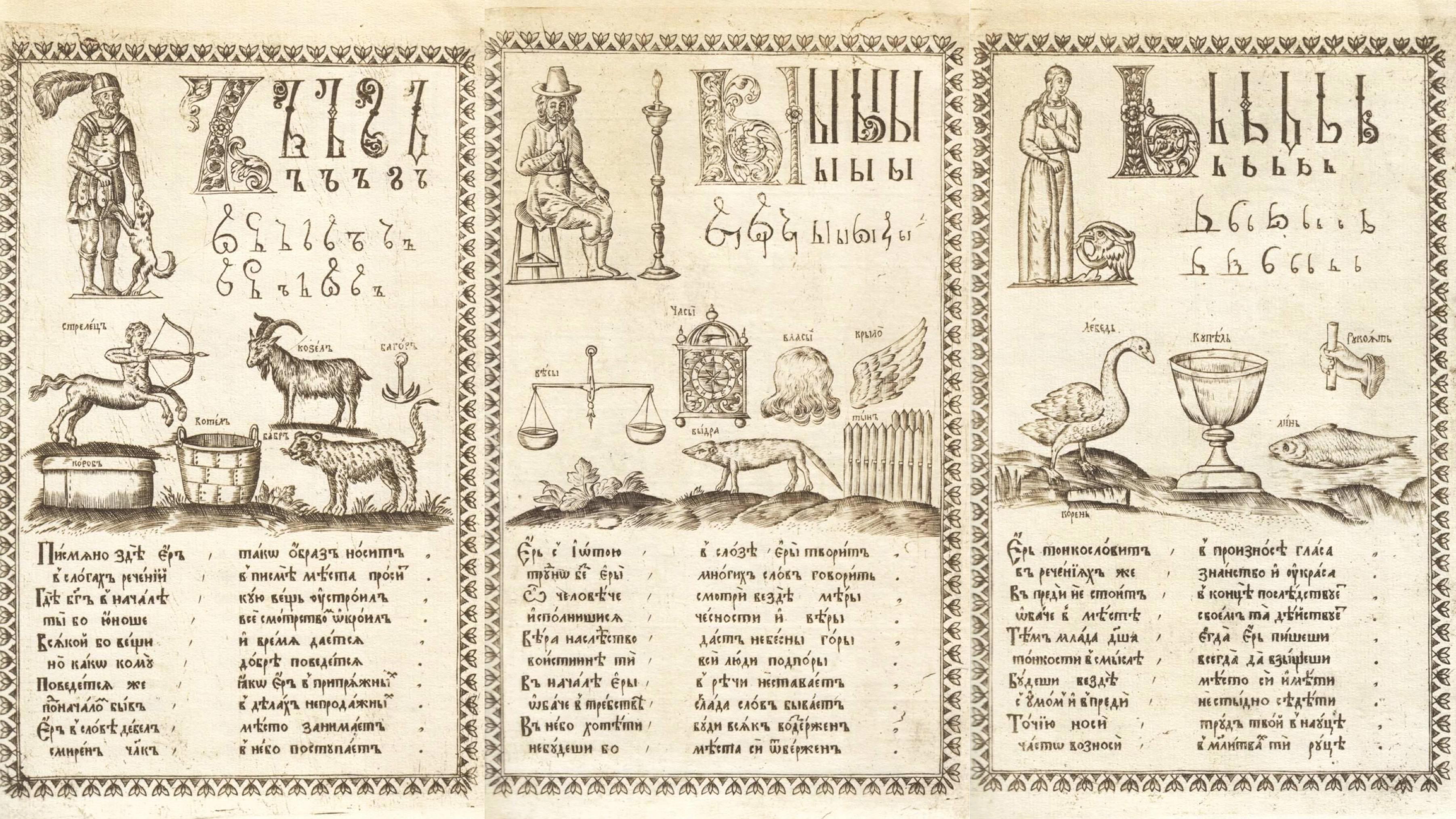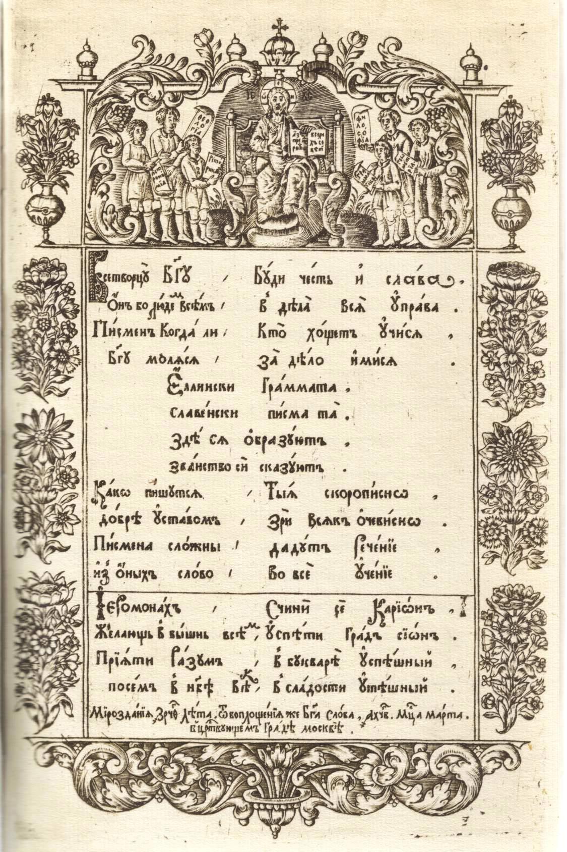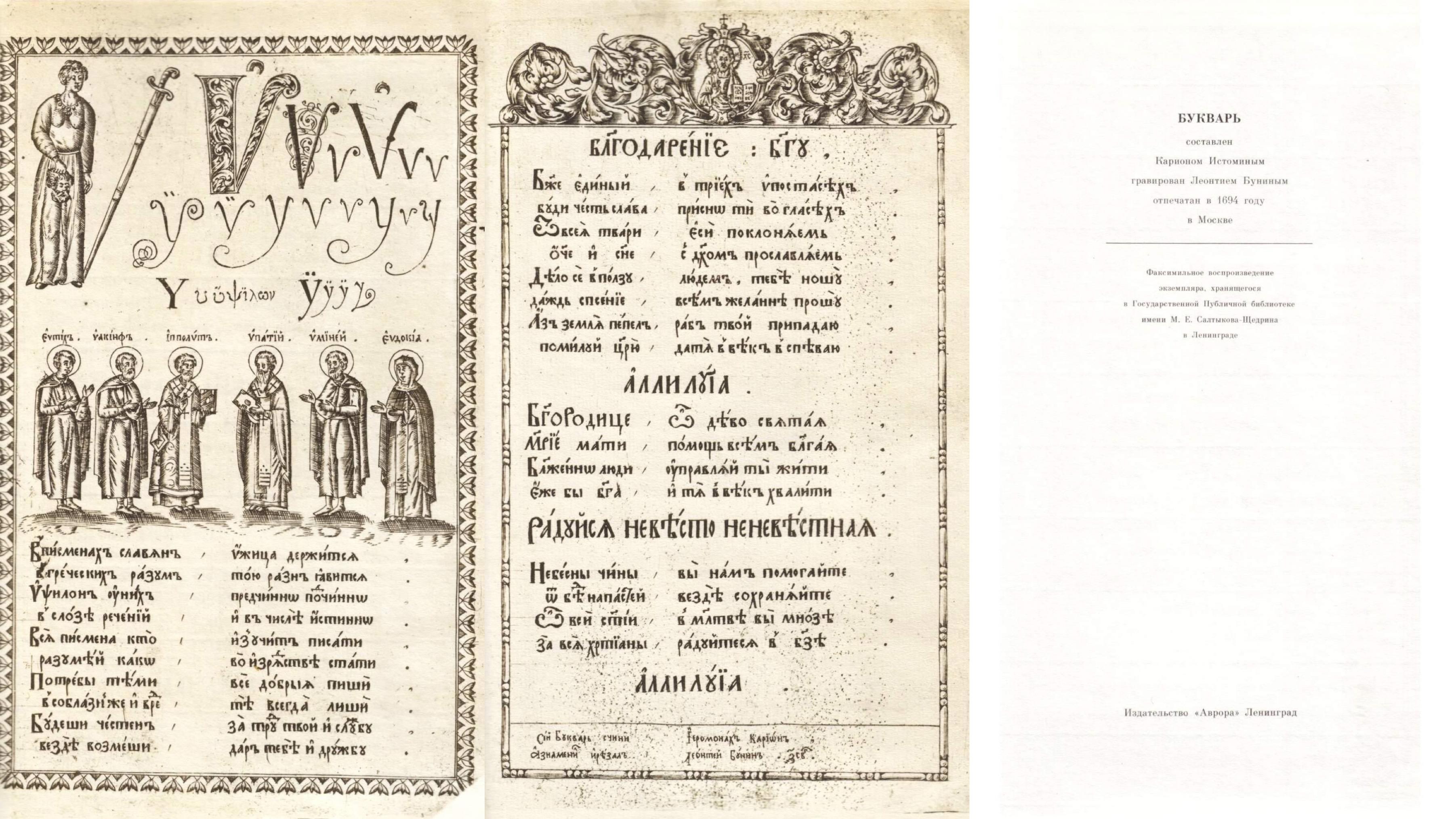 1694. Карион Истомин, «Букварь славенороссийских писмен уставных и скорописных, греческих же, латинских и польских».