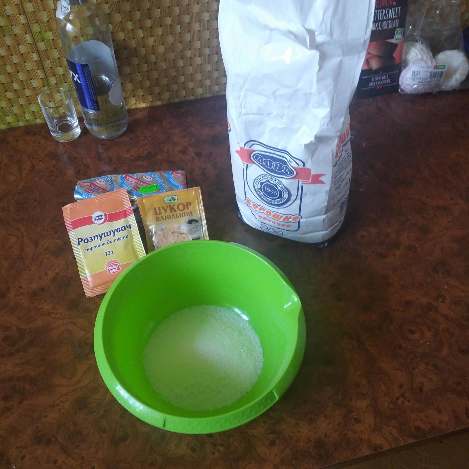 пакет муки, половина пачки маргарина, полбутылки водки, разрыхлитель, ванилин, коробочка сливок, немного сахара, сгущёнка (уже вареная), сборник Sex Pistols, шоколадка, масло и орехи с семечками.