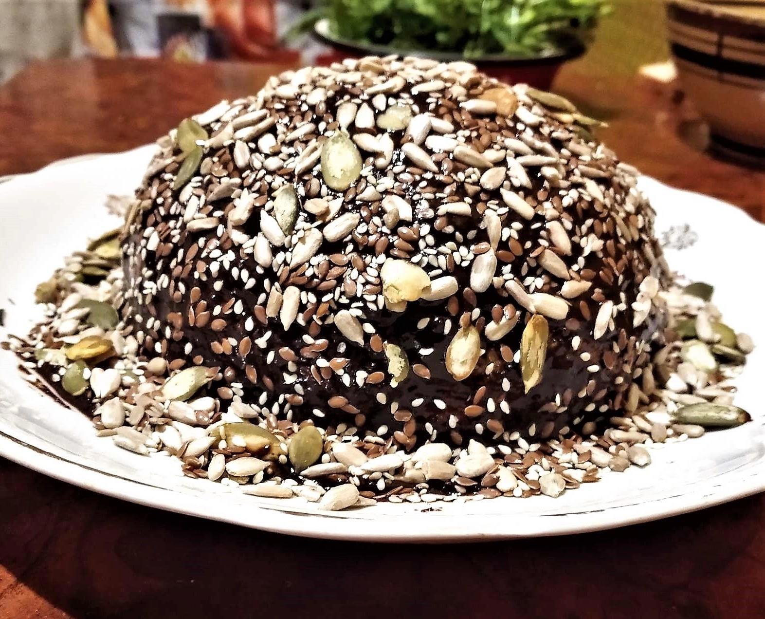 На глазурь я, чтоб не заморачиваться, растопила шоколадку с кусочком сливочного масла, сахаром и ложкой сливок. Можно было из какао сварить, но шоколадка всё равно была под рукой. Посыпала разными семечками. Снова поставила в холодильник и стала есть карасей.
