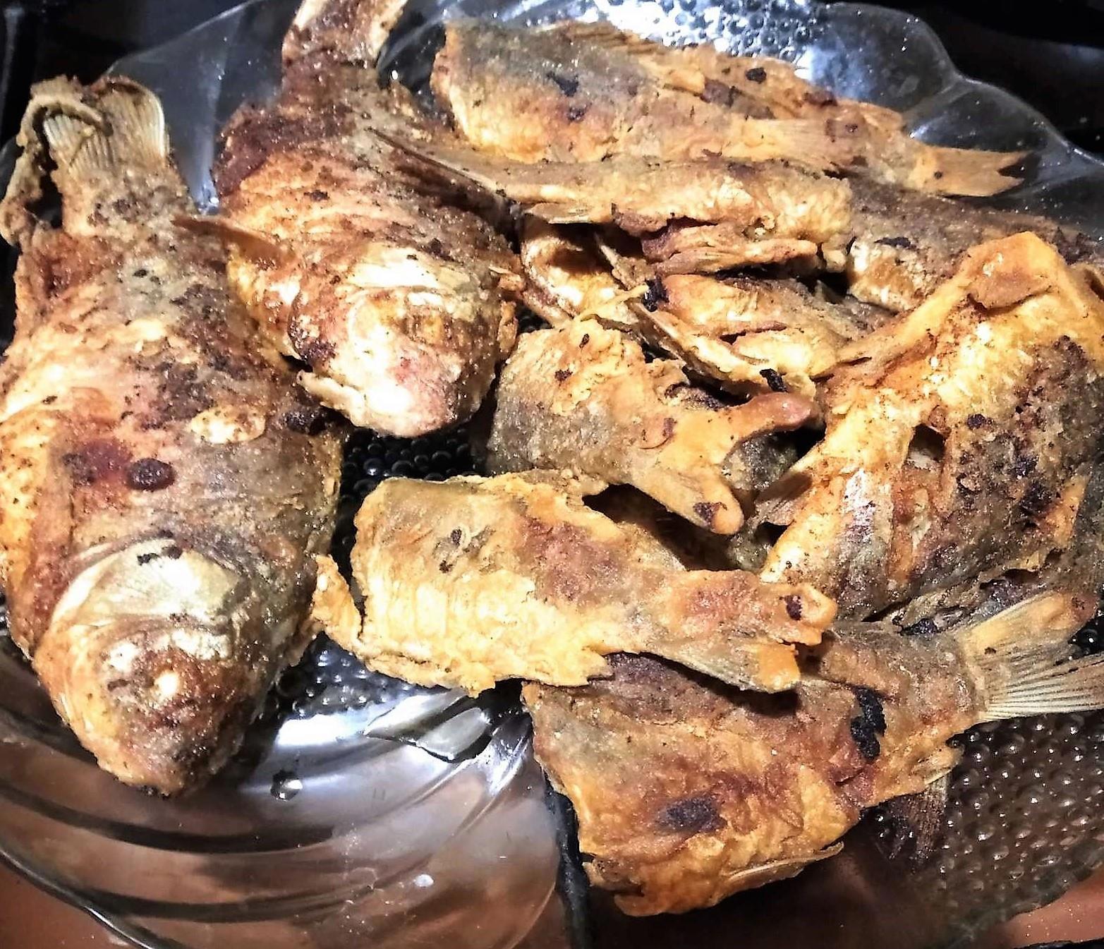 Его я на 3 часа положила в холодильник, пока оно там отдыхало - пошла купила, почистила и нажарила карасей. Маленькие - хрустящие, едятся с костями, большие - мягкие.