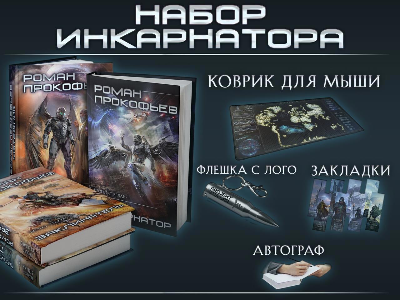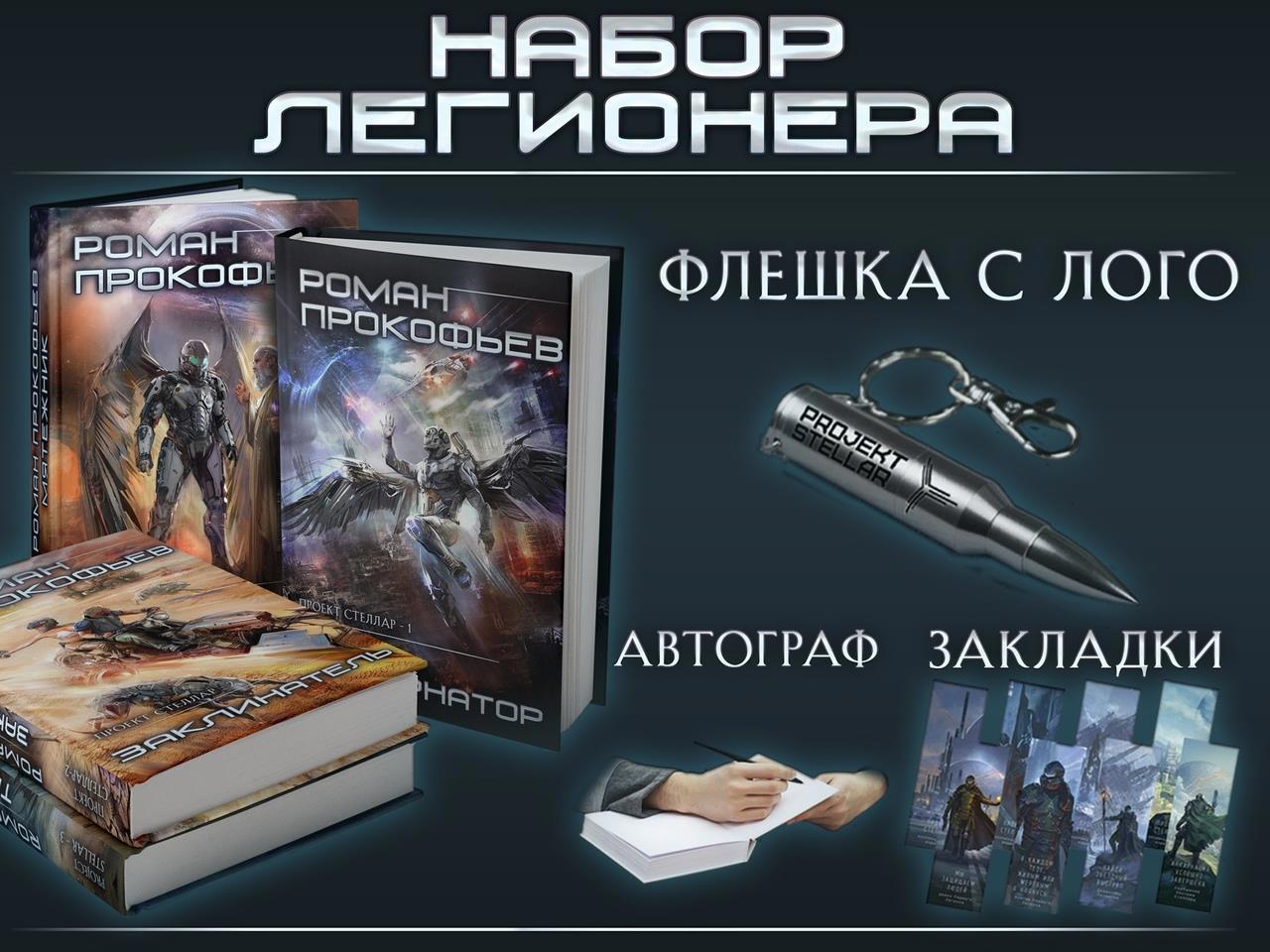 В неё включен комплект из 4-х закладок с иллюстрациями и цитатами из книги и флэшка на 16 Гб в виде патрона на которую будут записаны электронные и аудиоверсии первых четырех книг цикла. Это уже для тех, кто пришёл из любви к Прокофьеву, его книгам, его миру.