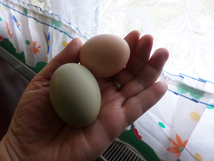 Результатом дневного орания кур оказалось(ну, я, по крайней мере так думаю) снесение двух яиц. Ой, божи-божи, стоило так орать из -за двух-то яиц? На хорошую яишницу не хватит. Не, ну тем курам, которые для этой цели порвали себе одно место, может и стоило поорать. А другие чо горлы драли? Наглые, прожорливые морды. На 9 курочек два яйца в день. Надо и правда суп сварить. Куда это годится? Одна беда, мы своих не едим. Ну, как будешь есть члена семьи, хоть и дармоеда? Низзя. Муж их высиживал там у себя в инкубаторе, который тоже сам сделал, бегал, заглядывал, ночи не спал, потом вылупляться помогал. Весь в маму-квочку превратился прям. Он им имена раздал, любовь там такая. Они за ним бегают, тока шо "мама" не орут. Черт с ними. А, кстати, вы знаете, почему у нас одна курочка несет голубые яйца? Нет? Я тоже не знаю. Кто-то сказал, что они без холестерина. О, как.